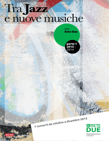 Tra Jazz e nuove musiche con Rete Due parte 1 2013 2014 rt re dicemb a e r b o i da ott 7 conce rsi.ch/jazz 2013 Organizzazione Rete Due – RSI, Lugano Produzione Paolo Keller Segretariato Alessandro Ardizzoni Con il sostegno di Migros Ticino Percento Culturale In collaborazione con Estival Eventi Oggi Musica Centro Culturale Chiasso Dicastero Giovani & Eventi Lugano Associazione Jazzy Jams, Lugano Associazione culturale Musica Oggi, Milano Piccolo Teatro, Milano Con il sostegno di In collaborazione con percento-culturale-migros.ch estivaleventi.ch oggimusica.ch chiassocultura.ch agendalugano.ch ; foce.ch jazzy-jams.ch associazionemusicaoggi.it piccoloteatro.org Tra Jazz e nuove musiche con Rete Due Nel mese di ottobre si apre tradizionalmente una delle rassegne concertistiche organizzate da Rete Due nelle sale di Lugano e del territorio del Canton Ticino. Oltre alle serie sinfoniche con l’Orchestra della Svizzera italiana – i Concerti d’Autunno e i Concerti dell’Auditorio – Rete Due sin dagli anni ’80 offre al pubblico dei melomani una ormai consolidata stagione di concerti a cavallo tra jazz, improvvisazione e musiche di frontiera che da qualche anno – nell’intento di precisare il proprio obiettivo, essere cioè una vetrina della creazione musicale contemporanea non accademica – ha assunto il titolo Tra jazz e nuove musiche. La prima parte della nuova serie 2013/14 – tra ottobre e dicembre – proporrà una manciata di allettanti appuntamenti. Spiccano nel nuovo in cartellone le presenze del grande sassofonista norvegese Jan Garbarek (Chiasso, il 26 novembre), del violoncellista improvvisatore olandese Ernst Reijseger con il suo nuovo trio dai sapori etnici con Harmen Fraanje piano e Mola Sylla voce e percussioni (Studio Foce, Lugano il 10 ottobre), dell’ensemble – pure decisamente “world” – del pianista-culto tedesco Joachim Kühn (stessa sede, il 14 novembre). Da segnalare inoltre il recital del virtuoso della chitarra acustica contemporanea Pierre Bensusan (Conservatorio di Lugano, 3 ottobre), gli appuntamenti a novembre di Estival Nights (uno dei concerti – l’omaggio a Dave Brubeck di Bob James e David Sanborn – sarà coprodotto da Rete Due, che pure seguirà tutta la rassegna in diretta), il set del sassofonista e primattore dell’attuale scena jazz di Brooklyn John O’Gallagher (Jazz in Bess, Lugano il 12 novembre) nonché il progetto originale Jazz in Argentina (Auditorio RSI il 7 dicembre), in collaborazione con l’associazione Musica Oggi e il Piccolo Teatro di Milano. In questa speciale occasione, con gli autori invitati anche quali solisti, verranno eseguite le suites Bronca Buenos Aires del contrabbassista e arrangiatore Jorge Lopez Ruiz e Suite Trane del pianista Alberto Favero, lavori di fine anni ’60 determinanti nello sviluppo del moderno jazz sudamericano. Interpreti ne saranno la Civica Jazz Band e i suoi solisti, diretti da Enrico Intra. Il concerto verrà presentato anche al Piccolo Teatro Strehler di Milano. parte 1 2013 2014 Prodotta da Paolo Keller, la rassegna è realizzata in collaborazione con Estival Eventi, il Centro Culturale Chiasso, le associazioni Jazzy Jams e Oggimusica, il Dicastero Giovani & Eventi della Città di Lugano ed è sostenuta da Migros Ticino Percento Culturale. Tutti i dettagli al sito della rassegna www.rsi. ch/jazz I concerti verranno trasmessi in diretta o in differita su Rete Due (in Concerto Jazz, domenica sera, ore 21.00) e sul sito www.retedue. rsi.ch (click su “Ascolta la radio”). rsi.ch/jazz T + 41 (0)91 803 91 25 [email protected] BIGLIETTI (posti non numerati e riduzioni su presentazione di una tessera valida) CHF 25.– AVS /AI, soci Jazzy Jams e AMIT, Lugano Card, City Card Lugano, soci Oggimusica CHF 20.– Club Rete Due, studenti, apprendisti CHF 15.– Prevendite c/o Biglietteria online su www.biglietteria.ch (solo prezzo pieno) e offline presso tutti i punti vendita autorizzati: FFS Chiasso, Mendrisio, Lugano, Biasca, Bellinzona e Locarno MANOR Ascona, Bellinzona, Locarno, Lugano, Vezia, S. Antonino APOLLO VIDEOCENTER Lugano LIBRERIA LEGGERE Chiasso BY PINGUIS Bellinzona SOLDINI MUSIC CITY Locarno Prezzi e prevendite ESTIVAL NIGHTS Entrata (prezzo unico) CHF 20.– c/o Biglietteria online su www.biglietteria.ch e presso tutti i punti vendita FFS e MANOR Info Estival Nights: www.estivaleventi.ch Prezzi e prevendite concerto JAN GARBAREK a Chiasso Entrata CHF 30.– Club Rete Due, studenti, apprendisti, AVS/AI CHF 25.– c/o Ticketcorner online su www.ticketcorner.ch (solo prezzo pieno) e presso tutti i punti vendita autorizzati, nonché alla cassa del Cinema Teatro Chiasso (me-sa, ore 17.00 /19.30) e all’Ente Turistico, Mendrisio Info Centro Culturale Chiasso: T + 41 (0)91 695 09 16 www.chiassocultura.ch [email protected] GIO 03 OTT _PIERRE BENSUSAN 21:00 / Aula Magna del Conservatorio, Lugano-Via Soldino Una collaborazione RSI Rete Due - Associazione OGGIMUSICA GIO 10 OTT _TRIO REIJSEGER - FRAANJE - SYLLA 21:00 / Studio Foce, Lugano Una collaborazione RSI Rete Due - Dicastero Giovani & Eventi, Lugano MA 05 NOV Estival Nights 2013 _BOB JAMES - DAVID SANBORN GROUP feat. STEVE GADD and SCOTT COLLEY 20:30 / Teatro Cittadella 2000, Lugano Una collaborazione Estival Eventi - RSI Rete Due “Tra jazz e nuove musiche” Nell’ambito di ESTIVAL NIGHTS, 5-9 novembre 2013 MA 12 NOV _JOHN O’GALLAGHER TRIO +1 21:00 / Jazz in Bess music-club, Lugano-Via Besso 42a Una collaborazione RSI Rete Due - Associazione Jazzy Jams GIO 14 NOV _TRIO KüHN - BEKKAS - LOPEZ 21:00 / Studio Foce, Lugano Una collaborazione RSI Rete Due - Dicastero Giovani & Eventi, Lugano MA 26 NOV ECM session 5 _JAN GARBAREK GROUP 20:30 / Cinema Teatro, Chiasso Una collaborazione RSI Rete Due – Centro Culturale Chiasso SA 07 DIC _JAZZ IN ARGENTINA 21:00 / Auditorio RSI, Lugano CIVICA JAZZ BAND con solisti e coro ENRICO INTRA direzione Musiche di JORGE LOPEZ RUIZ e ALBERTO FAVERO Produzione originale in collaborazione 