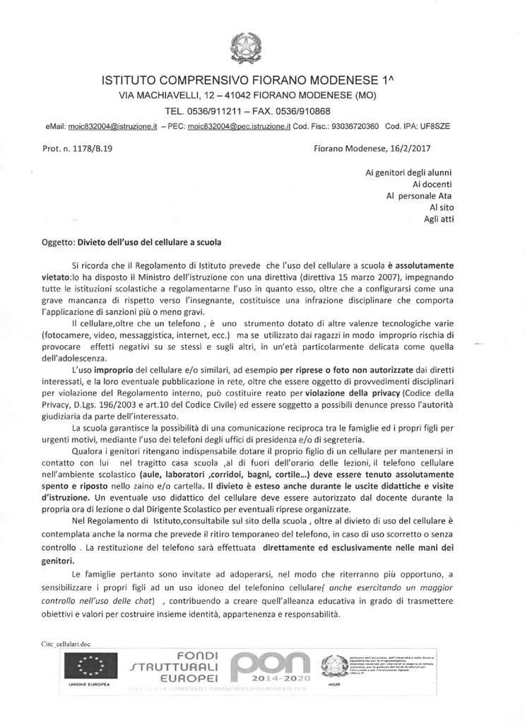 Divieto uso del cellulare a scuola