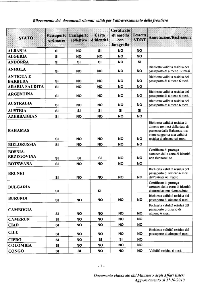 Documenti validi per l`espatrio
