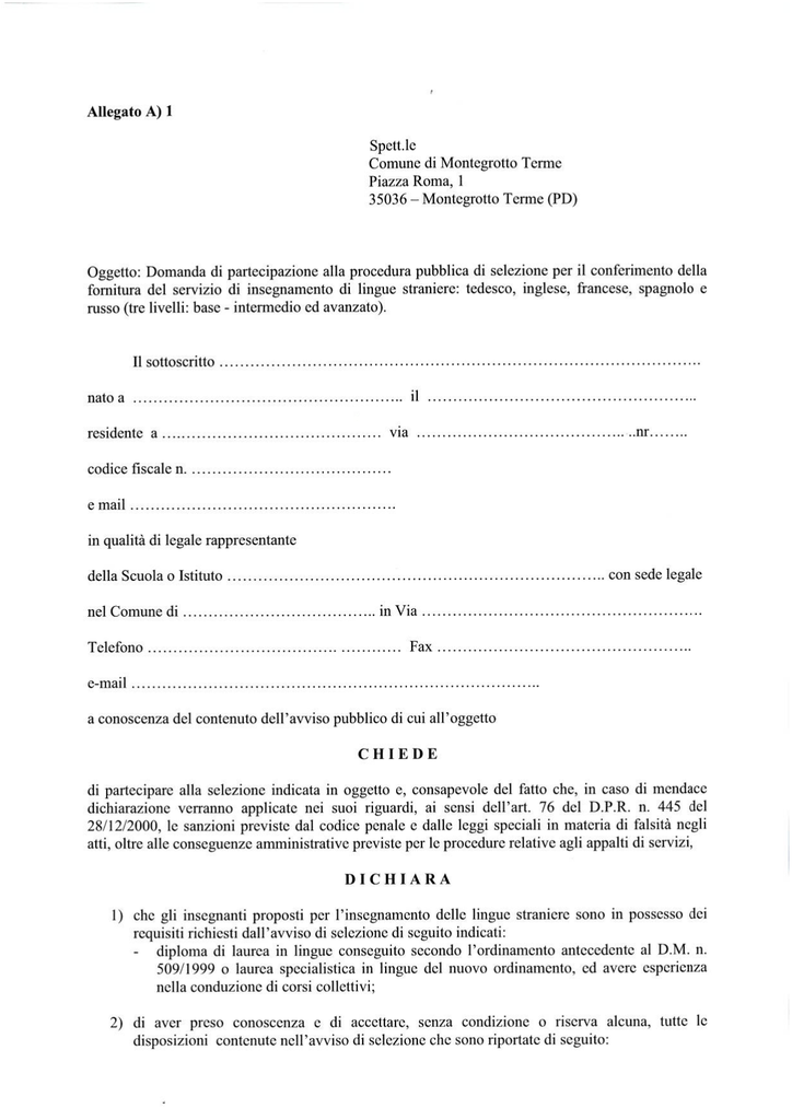 domanda di partecipazione lingue