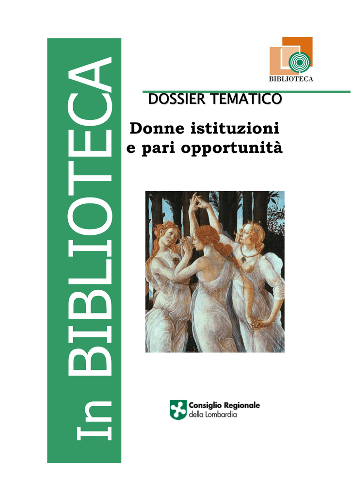 DOSSIER TEMATICO Donne istituzioni e pari opportunità Pubblicazione a cura dell’Ufficio Ricerche e Biblioteca – Servizio Valutazione Processo Legislativo e Politiche regionali del Consiglio Regionale della Lombardia Coordinamento: Nicoletta Cerrani Redazione Anna Baj Roberto Grazzi Progetto grafico Michele Salvi Riproduzione Centro stampa Consiglio Regionale Settembre 2007 Presentazione Il Consiglio e il Parlamento europeo hanno designato il 2007 “Anno europeo delle pari opportunità per tutti”. L’evento vede coinvolte a trecentosessanta gradi istituzioni politiche a livello nazionale ed internazionale. Questa iniziativa servirà a rendere i cittadini Ue più consapevoli del proprio diritto a non essere discriminati, a promuovere le pari opportunità in campi quali il lavoro e l'assistenza sanitaria e ad affermare il valore della diversità quale elemento di forza dell’identità europea. L'"Anno europeo delle pari opportunità per tutti” sarà articolato intorno a quattro temi principali: i diritti, la rappresentanza, il riconoscimento, il rispetto, ricorrendo esattamente dieci anni dopo l'"Anno europeo contro il razzismo" e l'introduzione, nel trattato CE, dell'articolo 13, che vieta all'interno dell'Unione europea ogni forma di discriminazione. Anche noi, con questo lavoro, vogliamo offrire un piccolo contributo alla celebrazione di un evento che auspichiamo possa essere un primo passo per la concretizzazione dei tanti buoni propositi espressi nel corso degli ultimi anni. L’obiettivo che ci siamo posti nella predisposizione di questo dossier tematico è stato quello di segnalare nuovo materiale - monografie, letteratura grigia, articoli di riviste - individuando le più attuali risorse informative disponibili nella nostra Biblioteca concernenti le nuove responsabilità politiche, sociali ed economiche che coinvolgono il mondo femminile. Oltre alle indicazioni bibliografiche relative all’elenco dei materiali posseduti (monografie, letteratura grigia) e alla segnalazione di articoli di riviste che analizzano da vari punti di vista le problematiche femminili, troverete gli abstract di alcuni volumi più significativi sull’argomento ed il testo integrale di articoli che offrono rilevanti spunti di riflessione sul tema della conciliazione della vita familiare e professionale. L’ultima sezione del dossier fornisce un elenco di siti relativi a organismi associazioni, archivi e centri di documentazione che si occupano di pari opportunità e politiche femminili: uno strumento semplice e sempre aggiornato per avere accesso a quelle “informazioni di genere” che costituiscono l’imprescindibile presupposto per una partecipazione sempre più incisiva delle donne alla vita sociale e politica. Il dossier è completato da un’appendice normativa e giurisprudenziale collocata su supporto elettronico che, senza pretese di esaustività, intende fornire un quadro delle più significative disposizioni relative alla parità di genere presenti a livello comunitario, nazionale e regionale. Tra i testi presenti nell’appendice particolarmente significativo è il recente “Codice delle pari opportunità tra uomo e donna” (d.lgs. 118/2006) che ha operato un riordino complessivo della normativa di settore. La sezione regionale comprende la normativa lombarda relativa alle pari opportunità, le norme statutarie di quelle Regioni che hanno provveduto ad approvare un nuovo Statuto a seguito della revisione del titolo V della Costituzione e la legislazione elettorale regionale riguardante la materia. Si sono infine inseriti atti normativi stranieri di estremo interesse, quali la legge spagnola sulla parità del marzo 2007. INDICE PARTE I Abstract Selezione dalle monografie presenti in biblioteca • • • • • • p. Donne e parlamenti: uno sguardo internazionale, a cura di Manon Tremblay, Bonomia University Press, 2006 Giovani donne verso l'autonomia e l'indipendenza, Consiglio Regionale della Lombardia, Irer, Milano, 2006 L' urbanità delle donne: creare, faticare, governare ed altro, a cura di Antonio Mazzette, F. Angeli, Milano, 2006 Eguaglianza, donne e diritto, Letizia Gianformaggio, Il Mulino, Bologna, 2005 Donne e istituzioni politiche: analisi critica e materiali di approfondimento, Marilisa D’Amico, Alessandra Concaro, Giappichelli, Torino, 2006 Parità sul lavoro: pari opportunità e occupazione nella grande , impresa lombarda, a cura di Alessandro Gaj, Guerini e Ass., Milano, 2006 Bibliografia Monografie e materiali di letteratura grigia presenti in biblioteca p. Documenti full text p. • • • • • • Regione Lombardia: Piano regionale 2007 “Anno europeo delle Pari opportunità per tutti”. Bando – Contributi per la predisposizione e attuazione dei Piani territoriali degli orari (l.r. 28-2004). Commissione regionale per le pari opportunità tra uomo e donna : Piano attività 2007. Ministero del Lavoro e della Previdenza sociale: Progetto per l’anno europeo 2007 contro le discriminazioni “Bollino rosa – Stesse Opportunità Nuove Opportunità” Provincia di Milano, Servizio politiche di genere, “C’era una volta.1946-2006: a sessant’anni dal diritto di voto il lungo cammino delle donne” ISTAT “Le statistiche di genere” marzo 2007 Spoglio delle riviste presenti in biblioteca p. Articoli e saggi full text • • • • • • • . Le prestazioni sociali tra parità di trattamento tra uomini e donne, libertà di circolazione e prestazioni nazionali: limiti e garanzie del diritto comunitario”, di Miriam Campana, in Diritto Pubblico comparato ed europeo, Anno 2006, II Le forme di tutela contro la violenza domestica”, di Lorenzo Ciarloni, in Giurisprudenza di merito, Anno 2006, n.09, p. 1840 “Democrazia paritaria, “quote rosa” e nuovi statuti regionali”, di Pier Luigi Petrillo, in “I nuovi statuti delle Regioni ordinarie”, il Mulino, 2006 “La rappresentanza sfidata: il modello liberale tra quote di genere e rilievo del fa