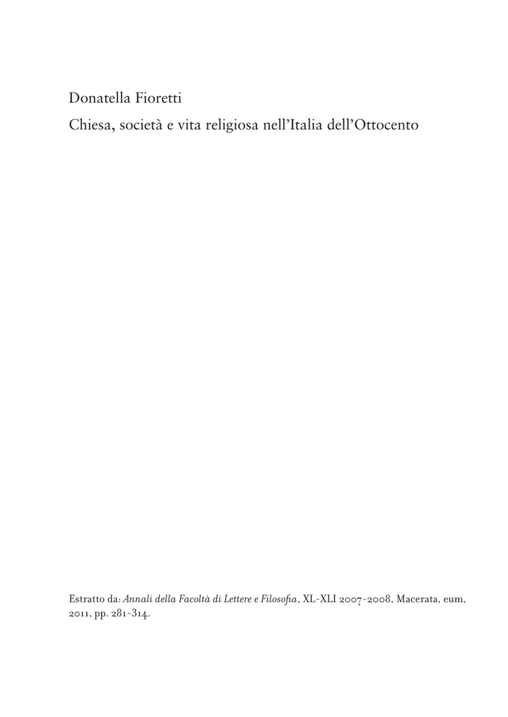 Donatella Fioretti Chiesa, società e vita religiosa nell`Italia
