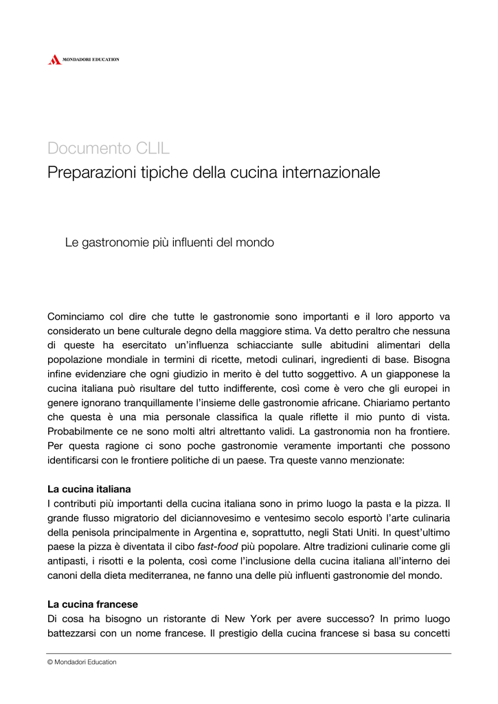 Documento CLIL Preparazioni tipiche della cucina internazionale