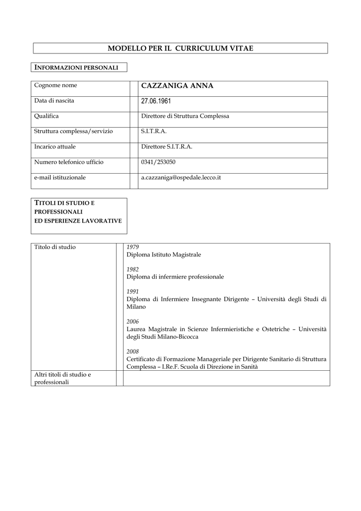 MODELLO PER IL CURRICULUM VITAE CAZZANIGA ANNA 27.06