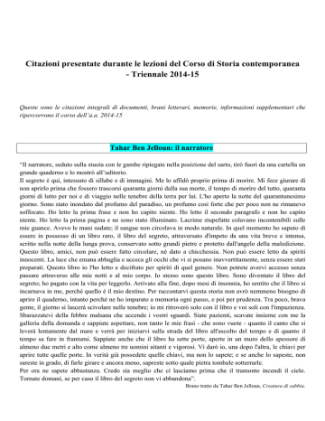 Citazioni presentate durante le lezioni del Corso di Storia contemporanea