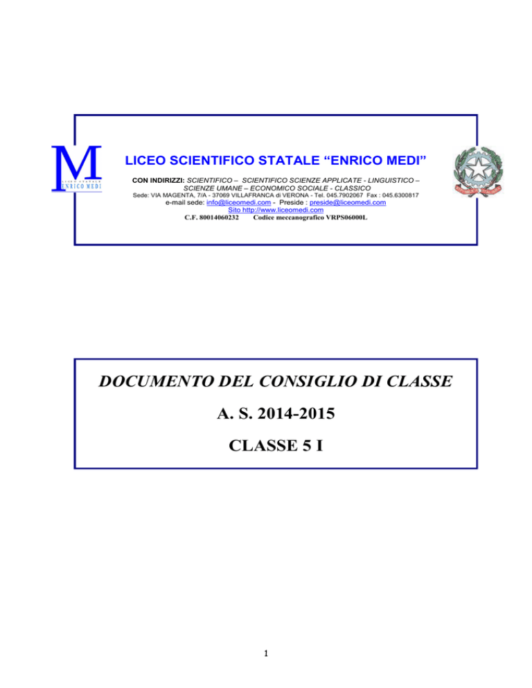 documento del consiglio di classe as 2014-2015 classe 5 i