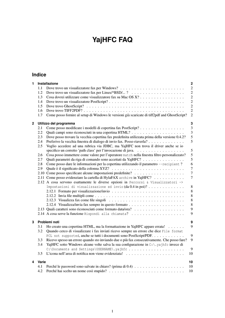 Quali parametri da riga di comando sono accettati da YajHFC? . . . . . . . . . . . . . . .