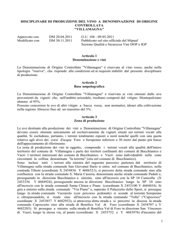 DISCIPLINARE DI PRODUZIONE DEL VINO A DENOMINAZIONE DI ORIGINE