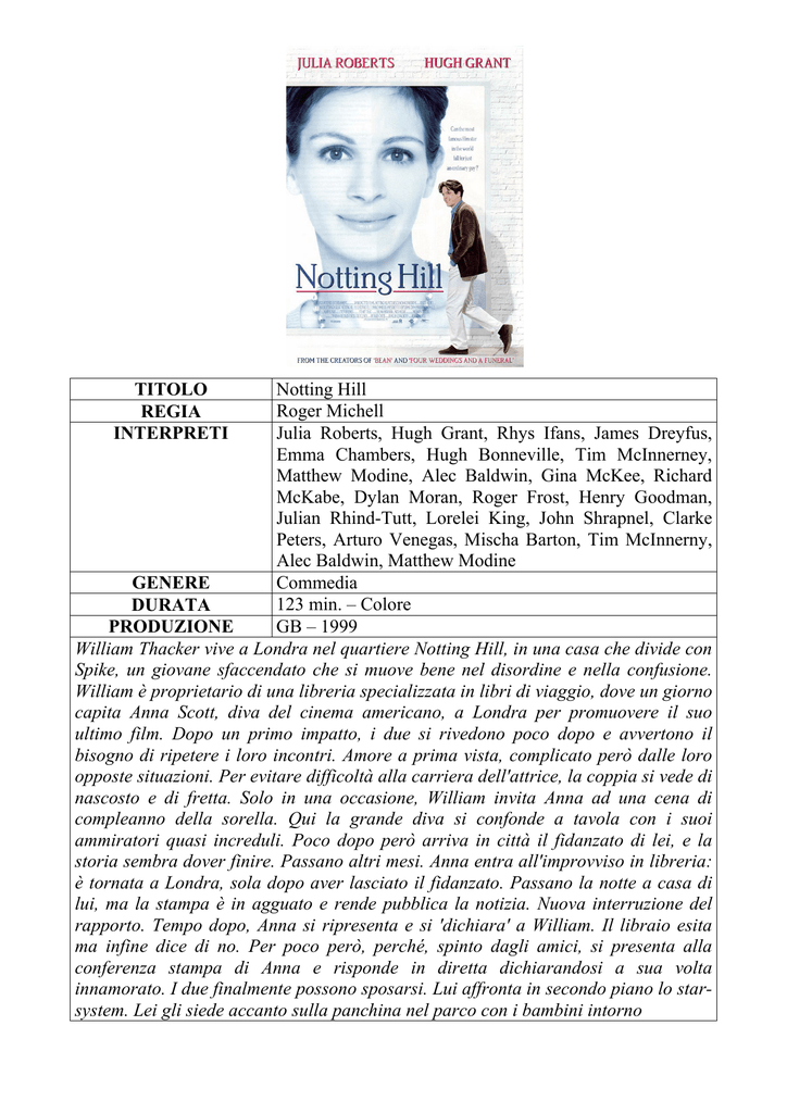 TITOLO Notting Hill REGIA Roger Michell INTERPRETI Julia