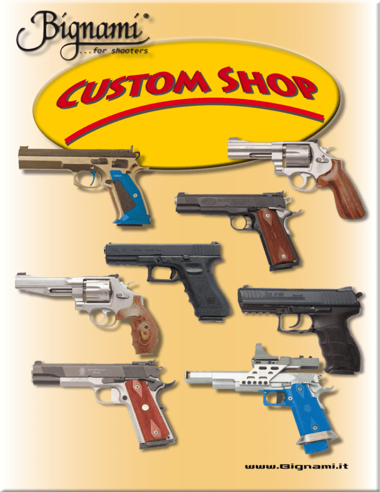 www.Bignami.it Accessori Custom 1911 / 2011 ED BROWN KIT PERNI MARWELL PIN ED BROWN /STI kit perni Cod. 370855 Ed Brown Cod.370852 STI Marwell Pin Oversize Hammer & Sears Cod. 370807 WILSON KIT PERNI WILSON kit perni / molle black 1911 / 2011 Cod. 370346 STI DISCONNETORE STI disconnettore Cod. 370507 BLOCCO PERCUSSORE STI blocco percussore cal .45 Cod. 370652 cal 9/38/40 Cod. 370837 PERNO BIELLA BROWNELL’S Perno Biella Cod. 370391 Perno Biella .154 Cod. 371006 Perno Biella .156 PERCUSSORE NOWLIN percussore cal 9mm/.38 Cod. 370386 WILSON BIELLE PERCUSSORE STI percussore titanium cal 9/40 Cod. 370530 acciaio cal 9/40 Cod. 370802 ESTRATTORE STI estrattore cal 9/38 Cod. 370508 cal .45 Cod. 370762 cal .40 Cod. 370836 GRILLETTO STI grilletto 1911 alluminio elsa acciaio inox Cod. 370704 GRILLETTO STI grilletto 1911 nero corto Cod. 370528 lungo Cod. 370527 www.Bignami.it 2 WILSON WILSON WILSON WILSON WILSON WILSON Biella “A” .268 Cod.370393 Biella “B” .273 Cod.370394 Biella “C” .278 Cod.370395 Biella “D” .283 Cod.370397 Biella “E” .288 Cod.370397 Kit Bielle 5pz. Cod. 370392 GRILLETTO STI grilletto 2011 nero lungo Cod. 370525 corto Cod. 370526 GRILLETTO STI grilletto gunsmith 1911 nero lungo Cod. 370524 Accessori Custom 1911 / 2011 STI MIRINO TARGET STI mirino competition “Patridge” Cod. 370740 STI MIRINO TACTICAL tipo STI mirino a rampa zigrinato Cod. 370737 STI mirino con fibra ottica rossa e verde Cod. 370565 Cod. 370913 MGW Cod. 370938 NOVAK STI TACCA MIRA STI TACCA MIRA STI TACCA MIRA STI tacca mira HeinI. Cod. 370575 MGW NOVAK MIRINO STI MIRINO COMPETITION STI tacca mira regolabile tipo BO-MAR. Cod. 370509 STI tacca mira regolabile NOVAK. Cod. 370833 BRITE SITE FIBRE OTTICHE Cod. Cod. Cod. Cod. Cod. Cod. Cod. Cod. 370687 Fibra Ottica .040 Rossa 370722 Fibra Ottica .040 Verde 370503 Fibra Ottica .060 Rossa 370692 Fibra Ottica .060 Verde 370688 Fibra Ottica .078 Rossa 370723 Fibra Ottica .078 Verde 370689 Fibra Ottica .100 Rossa 370690 Fibra Ottica .100 Verde STI KIT MINUTERIA COMPLETO STI kit completo (viti, perni, molle, leve sicura, estrattore, espulsore, percussore. Cod. 370548 calibro 38/40 Cod. 370696 calibro .45 ACP VITI E BUSSOLE PER MOD.1911 Cod. 370857 Viti Allen Guance mod.1911 Cod. 370818 Viti inox guance mod1911. Cod. 370498 Bussole Guance mod.1911 STI SET VITI STI set viti per impugnatura 2011. Cod. 370539 www.Bignami.it 3 Accessori Custom 1911 / 2011 CANE CANE STI cane square. Cod. 370504 STI cane commander. Cod. 370506 PLUNGER TUBE KIT MOLLA STI molla triplice. Cod. 370532 STI Plunger tube Kit Cod. 370918 CONTRO CANE STI contro cane sear S 7. Cod. 370505 ELSA CANE STI elsa cane titanium. Cod. 370531 PLUNGER TUBE STI Plunger tube Standard 1911 - A1 Cod.370916 ESPULSORE EGW espulsore lungo cal .38 Cod. 370363 cal .45 Cod. 370361 ESPULSORE STI espulsore cal. 38/40. Cod. 370644 cal. 45 ACP Cod.370896 cal. 9x21 IMI Cod.370945 HOLD OPEN Hold Open Cod. 370533 STI Cod.370359 EGW Inox Cod.370360 EGW blue SICURA STI sicura ambi inox Cod. 370649 blue Cod. 370650 SICURA Ed brown sicura ambi inox Cod. 370349 blue Cod. 370351 www.Bignami.it 4 SICURA STI sicura singola inox Cod. 370647 blue Cod. 370648 STI SICURA DORSALE STI sicura dorsale blue Cod. 370519 inox Cod. 370520 Accessori Custom 1911 / 2011 STI SGANCIO STI sgancio caricatore 1911. Cod. 370694 ED BROWN sgancio caricatore inox Cod 370799 STI SGANCIO STI SGANCIO CARICATORE STI MOLLA RECUPERO STI Molla caricatore Cod.370744 per calibro 9/.38 140 mm. molla con11 Spire Cod.370781 per calibro .40/.45 140 mm. molla con 10 Spire Cod.370782 per calibro 38/40 170 mm. molla con 13 Spire GUN CRAFT sgancio caricatore maggiorato per Para Ordnance Cod. 370364 ED BROWN blocco sgancio caricatore inox. Cod. 370608 Cod. 370534 per mod.2011 Cod. 370731 per mod.1911 STI sgancio caricatore 2011 con e senza foro filettato Cod.370536 con foro filettato Cod.370534 senza foro STI MOLLA CARICATORE GUN CRAFT SGANCIO ED BROWN BLOCCO STI Molla Recupero Cod.370864 molla recupero 5.1 08 Lbs Cod.370865 molla recupero 5.1 09 lbs Cod.370697 molla recupero 5.1 10 lbs Cod.370698 molla recupero 5.1 11 lbs Cod.370699 molla recupero 5.1 12 lbs Cod.370700 molla recupero 5.1 13 lbs Cod.370701 molla recupero 5.1 14 lbs Cod.370702 molla recupero 5.1 16 lbs Cod.370703 molla recupero 5.1 17 lbs Cod.370741 molla recupero 5.1 18 lbs ED BROWN SGANCIO ED BROWN sgancio caricatore maggiorato per 1911 blue 1911. Cod. 370367 inox 1911. Cod. 370366 DORSALINO DORSALINO SMITH & ALEXANDER dorsalino blue colt office Cod. 370810 SMITH & ALEXANDER dorsalino c/ mini gonna 1911 blue Cod. 370470 inox Cod. 370735 www.Bignami.it 5 Accessori Custom 1911 / 2011 DORSALINO SMITH & ALEXANDER dorsalino flat inox 1911. Cod. 370476 flat blue 1911. Cod. 370734 DORSALINO SMITH & ALEXANDER dorsalino curvo inox 1911. Cod. 370735 Cod. 370607 inox. Cod. 370609 blue STI reverse plug 5”. Cod. 370573 STI PLUG BUSHING WILSON / STI STI spring plug 5” Cod. 370914 WILSON SHOCK BUFFER WILSON Shock Buffer conf. 6 pz. Cod.370398 www.Bignami.it 6 A&B reverse plug con supporto. Cod. 370434 ASTA GUIDA MOLLA ASTA GUIDA MOLLA STI guide rod 5” monopezzo. Cod. 370574 ASTA RECUPERO STI asta recupero 5” L/H-recoil master. Heavy Cod. 370537 Light Cod. 370695 Asta guidamolla per 1911. Cod. 370438 Wilson Cod.370849 Ed Brown STI ELEVATORE STI elevatore cal .38/.40 cal .45 MOLLA CANE MOLLA PERCUSSORE Cod.370412 Nowlin Molla percussore REVERSE PLUG REVERSE PLUG WOLFF Molla Cane 1911 Cod.370816 molla .17 lbs Cod.370817 molla .18 lbs Cod.370420 molla . 20 lbs Cod. 370642 Cod. 370739 Accessori Custom 1911 / 2011 MINI GONNA STI mini gonna alluminio blue Cod. 370522 MINIG. & DORSALINO MINI GONNA MINI GONNA DAWSON mini gonna per STI 2011 alluminio rossa Cod. 370860 DAWSON inserto per minigonna STI mini gonna 2011 acciaio inox Cod. 370523 silver Cod.370862 ATTACCO BASE CARICATORE BASE CARICATORE STI base caricatore maggiorata per categoria Open Cod. 370599 STI base caricatore maggiorata per categoria standar