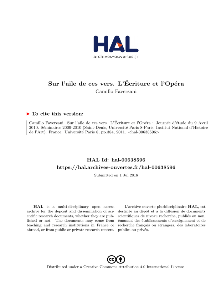Sur l`aile de ces vers. L`... - Hal-SHS