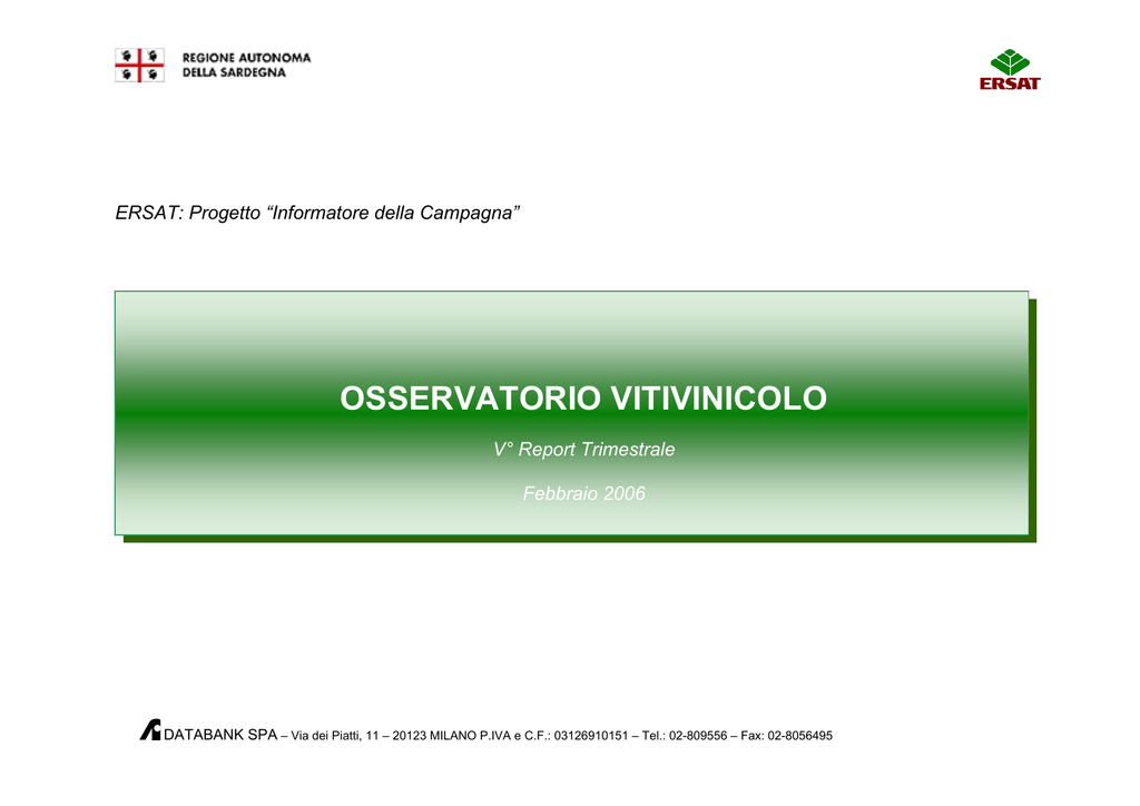 ERSAT: Progetto “Informatore della Campagna” OSSERVATORIO VITIVINICOLO V° Report Trimestrale Febbraio 2006 DATABANK SPA – Via dei Piatti, 11 – 20123 MILANO P.IVA e C.F.: 03126910151 – Tel.: 02-809556 – Fax: 02-8056495 INDICE INTRODUZIONE 1. 1.1. 1.2. 1.3. 1.4. 1.5. IL MERCATO La superficie vitata La produzione di uva La produzione di vino Il vino DOC e DOCG I vini da meditazione e dessert 4 4 5 7 9 13 15 2. IL COMMERCIO CON L’ESTERO 2.1. Le esportazioni italiane di vino 2.2. Le importazioni italiane di vino 2.3. Lo scenario internazionale: la Cina 2.3.1. Interscambio Italia – Cina 2.3.1.1. L’export di vino italiano in Cina 2.4. Le esportazioni e le importazioni sarde di vino 2.4.1. L’export di vino sardo in Cina 17 17 19 20 20 22 25 26 3. 3.1. 3.2. IL CONSUMO L’evoluzione del consumo verso una riscoperta della tradizione Evoluzione e tendenze del consumo di vino di qualità 27 27 29 4. 4.1. 4.2. 4.3. LA DISTRIBUZIONE La distribuzione in Italia La distribuzione del vino in Italia La distribuzione moderna in Cina e Hong Kong 31 31 34 36 Ersat Sardegna - Servizio per l'Assistenza al Marketing e alla Valorizzazione dell'Offerta Agricola Via Caprera n. 8.– 09123 - Cagliari – www.ersat.it 2 5. 5.1. 5.2. 5.3. 5.4. LO SCENARIO COMPETITIVO I fattori critici di successo in Italia Le principali aziende in Sardegna Le principali aziende in Italia Analisi del comportamento di alcuni dei principali operatori 53 53 56 57 59 6. 6.1. 6.2. 6.3. NOVITA’ E AGGIORNAMENTI Il valore della marca Notizie dal settore Fiere del settore 62 62 66 68 Allegato 1 73 Allegato 2 74 Allegato 3 75 Ersat Sardegna - Servizio per l'Assistenza al Marketing e alla Valorizzazione dell'Offerta Agricola Via Caprera n. 8.– 09123 - Cagliari – www.ersat.it 3 INTRODUZIONE Nel quinto numero di questo “Osservatorio dei Mercati” dedicato al comparto vinicolo abbiamo scelto di aggiornare alcune informazioni strutturali relative al mercato, alla distribuzione ed al consumo. Inoltre per quanto concerne il commercio con l’estero abbiamo fornito alcuni approfondimenti sugli scambi con la Cina, sia a livello nazionale sia a livello sardo. Nei prossimi numeri, partendo da questo quadro, esploreremo più approfonditamente singoli aspetti per fornire alle aziende sarde informazioni strategiche ma anche operative per accompagnarle nello sviluppo e suggerire nuove opportunità di business. Se la lettura di questo primo numero vi solleva quesiti o necessità di approfondimenti su dati e informazioni relativi al comparto carni, indirizzate i vostri quesiti: • per posta all’indirizzo Ersat, att.ne “Servizio Assistenza al Marketing e alla Valorizzazione dell’Offerta Agricola”, Via Caprera 8 – 09123 Cagliari • per fax ad Ersat allo 070/60262322 all’att.ne “Servizio Assistenza al Marketing e alla Valorizzazione dell’Offerta Agricola”, • on line attraverso la sezione Osservatorio dei Mercati del sito internet www.ersat.it . I quesiti più interessanti verranno selezionati da Ersat che provvederà a rispondere. Il servizio è riservato alle imprese che operano in Sardegna. Ersat Sardegna - Servizio per l'Assistenza al Marketing e alla Valorizzazione dell'Offerta Agricola Via Caprera n. 8.– 09123 - Cagliari – www.ersat.it 4 1. IL MERCATO 1.1. La superficie vitata Secondo i dati Istat ancora provvisori e riferiti a novembre 2005, la superficie totale destinata ad uva da vino è pari in Italia a 763.691 ettari, in continua contrazione rispetto al quinquennio precedente. Stesso andamento per la superficie vitata sarda che, nei primi undici mesi del 2005, rappresenta il 4,1% di quella nazionale (era il 4,6% nel 1995). Ersat Sardegna - Servizio per l'Assistenza al Marketing e alla Valorizzazione dell'Offerta Agricola Via Caprera n. 8.– 09123 - Cagliari – www.ersat.it 5 Tab. 1. Superficie totale destinata ad uva da vino in Sardegna e in Italia, 1995, e dal 1998 a novembre 2005 (ettari) Sardegna Italia 1995 37.664 823.858 1998 36.279 833.099 1999 42.783 836.549 2000 42.322 835.895 2001 42.607 817.583 2002 41.607 797.977 2003 41.621 789.155 2004 33.101 768.045 2005(a) 31.330 763.691 % variaz. m.a. 2004/1998 -1,5 -1,3 900.000 800.000 700.000 600.000 500.000 Sardegna 400.000 Italia 300.000 200.000 100.000 0 1995 1998 1999 2000 a) - dati riferiti al mese di novembre 2005 e aggiornati al 12/01/06 2001 2002 2003 2004 2005(a) Fonte: Istat Ersat Sardegna - Servizio per l'Assistenza al Marketing e alla Valorizzazione dell'Offerta Agricola Via Caprera n. 8.– 09123 - Cagliari – www.ersat.it 6 1.2. La produzione di uva Secondo le rilevazioni Istat ancora provvisorie, l’uva da vino raccolta in Italia nel 2005 ammonta a 68.923.437 quintali con una contrazione pari al 5,2% rispetto al 2004, mentre l’uva da vino raccolta in Sardegna risulta pari a 1.414.604 quintali (il 2,1% dell’uva da vino raccolta nel territorio nazionale), evidenziando una diminuzione pari circa all’1%, inferiore alla media nazionale. Ersat Sardegna - Servizio per l'Assistenza al Marketing e alla Valorizzazione dell'Offerta Agricola Via Caprera n. 8.– 09123 - Cagliari – www.ersat.it 7 Tab. 2. Uva da vino raccolta in Italia(a), 2005/2004 (% di variazione del raccolto 2005 sul 2004) Basilicata Calabria Molise Puglia Sicilia Sardegna Campania Abruzzo Marche Liguria Lazio Piemonte Umbria Lombardia Friuli Venezia Giulia Emilia Romagna Valle d'Aosta Trentino Alto Adige Toscana Veneto -1,0% -5,2% Italia -25 -20 -15 -10 -5 0 5 10 15 20 25 30 a) - per i dati in valore assoluto vedere allegato 1 Fonte: Elaborazioni Databank su dati Istat Ersat Sardegna - Servizio per l'Assistenza al Marketing e alla Valorizzazione dell'Offerta Agricola Via Caprera n. 8.– 09123 - Cagliari – www.ersat.it 8 1.3. La produzione di vino Secondo le ultime stime di Ismea e Il Corriere Vinicolo, la produzione vinicola italiana nel corso dell’ultima vendemmia dovrebbe attestarsi a 49.076 migliaia di ettolitri, con una calo dell’8% circa rispetto all’