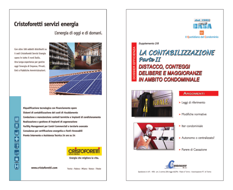 XV SOMMARIO pag. Si spengono gli impianti termici: è ora di installare i contabilizzatori (Confappi-Fna) ............................................................................................................................................... III Riscaldamento e ripartizione delle spese: cambiamenti in vista per la Uni 10200 (UNI e CTI) .................................................................................................................................................... IV Riscaldamento e ripartizione delle spese: il parere di Camera e Senato sul dlgs 102/2014 (Commissioni Attività Produttive e Industria della Camera dei Deputati e del Senato) ............................. V Distacco, dismissione, delibere, maggioranze: la contabilizzazione in ambito condominiale (Marco Gaito) ................................................................................................................................................ VI Condominio: quando è legittimo sostituire l’impianto centralizzato con quelli autonomi (Corte di Cassazione, sez. civ. II, sentenza numero 10860/2014) ............................................................ XIII ☙☙☙☙☙☙☙☙ Editore: Il Condominio editrice s.a.s. – Via E. Thesauro, 2 – 10125 Torino Tel. 011/6523611 – Fax 011/6523690 – E-mail: [email protected] Direttore responsabile: Gianluca Palladino L’elaborazione del testo, se pur effettuata con scrupolosa attenzione, non può comportare specifiche responsabilità da parte dei curatori/redattori per eventuali errori o inesattezze. © Copyright Il Condominio editrice s.a.s., Torino - 2016 La traduzione, l’adattamento totale o parziale, la riproduzione con qualsiasi mezzo (compresi i microfilm, i film, le fotocopie), nonché la memorizzazione elettronica, sono riservati per tutti i Paesi. Stampa: I.T.S. - Cavaglià (BI) Dossier efficienza A tale conclusione l’assemblea è pervenuta dopo aver escluso sia la possibilità di ripristinare il vecchio impianto centralizzato, ormai del tutto obsoleto e non rispettoso delle condizioni minime di rendimento dettate dalla normativa sul contenimento del consumo energetico, sia la eventualità di sostituire il vecchio impianto con un nuovo impianto centralizzato, a metano, soluzione invero ritenuta non praticabile non solo per le opere da eseguire, ma anche per il suo maggiore costo”. Ed ha osservato, quindi, che la delibera condominiale di trasformazione dell’impianto centralizzato di riscaldamento in impianti unifamiliari a gas, ai sensi dell’art. 26, secondo comma legge n. 10/91, in relazione all’art. 8, primo comma, lett. g) stessa legge, assunta a maggioranza delle quote millesimali, è valida anche se non accompagnata dal progetto di opere corredato dalla relazione tecnica di conformità di cui all’art. 28, primo comma stessa legge, attenendo tale progetto alla fase successiva di esecuzione della delibera. Dunque, la sentenza impugnata non ha né scorrettamente interpretato la norma di cui si denuncia la violazione, né tanto meno ne ha operato una falsa applicazione, giacché ciò che ha accertato la Corte territoriale è che il condominio ha dismesso l’impianto centralizzato non già puramente e semplicemente, ma disponendone la sostituzione con impianti singoli. 3. In conclusione il ricorso va respinto. 4. Seguono le spese, liquidate come in dispositivo. P. Q. M. La Corte rigetta il ricorso e condanna i ricorrenti alle spese, che liquida in 2.200,00, di cui 200,00 per esborsi, oltre IVA e CPA come per legge. Così deciso in Roma, nella camera di consiglio della seconda sezione civile della Corte Suprema di Cassazione, il 7.3.2014. XiV Dossier efficienza dente contrasto con la realtà e con le risultanze documentali ed istruttorie, così come fatto rilevare dai ricorrenti, sì da creare un’insufficiente, omessa ed anche contraddittoria motivazione su un fatto controverso (impianto alimentato a gas metano e non un obsoleto impianto alimentato a gasolio) decisivo ai fini del giudizio. 1.1. Il motivo è inammissibile, perché formula una critica alla motivazione della sentenza impugnata relativamente ad un fatto che non è né controverso né decisivo, come invece prescrive il n. 5 dell’art. 360 c.p.c. Come deduce la stessa parte ricorrente, il condominio non aveva contestato che l’impianto centralizzato fosse a metano. Oltre a ciò, tale fatto è tutt’altro che decisivo, poiché la Corte d’appello di Bari ha accertato il requisito del risparmio energetico non perché l’impianto centralizzato fosse a gasolio, ma perché questo era obsoleto, disattivato dalla stagione invernale 1994-1995, presentava la canna fumaria rotta e per di più in amianto (come tale da bonificare ex lege n. 257/92), e non rispettava le condizioni minime di rendimento dettate dalla normativa sul risparmio energetico, sicché il suo rendimento era assai modesto se confrontato con quello delle caldaie attuali. E nel richiamare la relazione del c.t.u. e quella, con questa coincidente, del tecnico a suo tempo incaricato dall’amministratore del condominio, ha osservato che la sostituzione dell’impianto di riscaldamento centralizzato con impianti singoli consentiva effettivamente un contenimento del consumo energetico ed un uso più razionale dell’energia, raggiungendo un triplice obiettivo: termico (essendo gli impianti singoli maggiormente adattabili alle esigenze della singola famiglia), economico (per la conseguente possibilità di evitare sprechi, avvenendo la gestione del riscaldamento per singole unità abitative) ed ecologico (poiché il gas metano produce pochi inquinanti e, data la più bassa temperatura dei fumi, produce minori quantità di ossidi d’azoto; inoltre, scaricandosi in punti frazionati, i prodotti della combustione si diluiscono più facilmente nell’atmosfera). E poiché tale motivazione in fatto non è aggredita dalla censura se non sull’erroneo presupposto che essa dipenda dall’aver ritenuto c