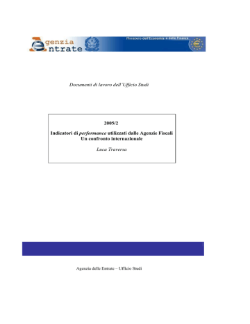 Documenti di lavoro dell’Ufficio Studi 2005/2 Indicatori di performance utilizzati dalle Agenzie Fiscali Un confronto internazionale Luca Traversa Agenzia delle Entrate – Ufficio Studi Documenti di lavoro dell’Ufficio Studi 2005/2 Indicatori di performance utilizzati dalle Agenzie Fiscali Un confronto internazionale Luca Traversa* Maggio 2005 * Stagista presso l'Ufficio Studi dell’Agenzia delle Entrate I documenti di lavoro non riflettono necessariamente l’opinione ufficiale dell’Agenzia delle Entrate ed impegnano unicamente gli autori. Possono essere liberamente utilizzati e riprodotti per finalità di uso personale, studio, ricerca o comunque non commerciali a condizione che sia citata la fonte attraverso la seguente dicitura, impressa in caratteri ben visibili: http://www1.agenziaentrate.it/ufficiostudi . Informazioni e chiarimenti: [email protected] Agenzia delle Entrate – Ufficio Studi 2 Indicatori di performance utilizzati dalle Agenzie fiscali – Un confronto internazionale Nel presente lavoro si conduce una comparazione tra tre Agenzie Fiscali, quella Italiana, la Francese e la Neozelandese. La prima parte è dedicata ad illustrare le differenze strutturali che caratterizzano i tre organismi, mentre la seconda parte focalizza l’attenzione sugli indicatori di efficacia e di efficienza utilizzati per misurare i risultati. Dal confronto emergono notevoli similitudini ed alcuni elementi di difformità. Tra queste colpisce l’internalizzazione dei servizi dell’amministrazione francese rispetto a quella Italiana. La prima, infatti, gestisce in proprio attività che in Italia sono date all’esterno. Altrettanto chiaramente si evidenza come punto di forza della realtà italiana l’elevato livello di informatizzazione del sistema fiscale. Indicateurs de performance utilisés par les Agences fiscales - Une comparaison internationale La présente étude porte sur une comparaison entre les Agences fiscales italienne, française et néozélandaise. La première partie illustre les différences structurelles qui caractérisent les trois organismes. La deuxième partie est axée sur les indicateurs d'efficacité et d'efficience utilisés pour mesurer les résultats. La comparaison met en lumière beaucoup de similitudes ainsi que certaines différences. Parmi ces dernières il faut noter les services exécutés à l'intérieur de l'administration française par rapport à celle italienne. Des activités qui sont exécutés à l'intérieur de l'administration française sont sous-traitées à l'extérieur par l'administration italienne. De même, il y a lieu de souligner en tant qu'élément de force le niveau élevé d'informatisation de l'administration italienne. Performance indicators used by the tax Agencies - an international comparison This study covers a comparison between Tax Agencies of Italy, France and New Zealand. The first part illustrates the structural differences which characterise the three organisms. The second part is centred on the indicators of effectiveness and of efficiency which are used to measure the results. The comparison clarifies many similarities and certain differences. Among the latter it is important to look at the services carried out inside the French administration by comparison to what occurs in the Italian administration. Activities which are carried out inside the French administration are entrusted to external entities by the Italian administration. Similarly, it is appropriate to stress as an element of strength the high level of computerisation of the Italian administration. Leistungsindikatoren, die durch die fiskalischen Agenturen benutzt werden - ein internationaler Vergleich Diese Studie bezieht sich auf einen Vergleich zwischen den italienischen, französischen und neuseeländischen fiskalischen Agenturen. Der erste Teil illustriert die Strukturunterschiede, die die drei Organismen charakterisieren. Der zweite Teil wird auf die Wirksamkeits- und Wirtschaflichkeitsindikatoren ausgerichtet, die um die Ergebnisse zu messen benutzt werden. Der Vergleich zeigt viele Ähnlichkeiten sowie bestimmte Unterschiede auf. Es ist unter diesen Letzten zu bemerken die Dienste die innerhalb der französischen Verwaltung ausgeführt werden, im Vergleich mit der italienischen Verwaltung. Aktivitäten, die innerhalb der französischen Verwaltung ausgeführt werden, werden von der italienischen Verwaltung Dritten als Unterauftrag übertragt. Ebenso muß man als Kraftelement das hohe Informatisierungsniveau der italienischen Verwaltung unterstreichen. Indicadores de resultado utilizados por las Agencias fiscales - una comparación internacional El presente estudio se refiere a una comparación entre las Agencias fiscales de Italia, de Francia et de Nueva Zelanda. La primera parte ilustra las diferencias estructurales que caracterizan a los tres organismos. La segunda parte se orienta hacia los indicadores de eficacia y eficiencia utilizados para medir los resultados. La comparación saca a la luz muchas semejanzas así como algunas diferencias. Entre estos últimos es necesario tener en cuenta los servicios realizados dentro de la administración francesa con relación a la italiana. Actividades que son realizados dentro de la administración francesa son subcontratadas exteriormente por la administración italiana. Del mismo modo, procede destacar como elemento de fuerza el elevado nivel de informatización de la administración italiana. Agenzia delle Entrate – Ufficio Studi 2 INDICE 1. INTRODUZIONE .....................................................................................................5 2. ASPETTI METODOLOGICI ....................................................................................7 2.1 Le Raccomandazioni OCSE 2.1.1. Gli obiettivi e le sfide per le Autorità Fiscali 2.1.2. I rapporti con i contribuenti 2.1.3. Relazioni con i dipendenti 2.1.4. Caratteristiche legali ed amministrative 2.1.5. Gestione ed adattamento ai c