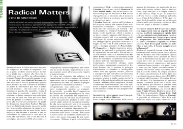 TUNE Radical Matters L’arte dei rumori fissati Label tradizionale ma anche netlabel, di derivazione post-industrial, mescola ricerca sonora ed artistica, ispirandosi alle avanguardie del ‘900. Abbiamo raggiunto il suo fondatore Sandro Gronchi, che ci ha delineato e approfondito le tematiche e le dinamiche d’azione del suo progetto artistico-musicale. Testo: Nicolas Campagnari Qua n t e e t i c h e t te in Italia nascono e muoiono n el v o l g e r e d i un cam bio di stagione ? Tr opp e, e q u a n t i c r edono ancora che per me tte rn e i n p i e d i u na e aderire alla filos ofia sia s uff i c i e n t e a v ere un P C e un collegame nto a In t e r n e t ? Tr o p p i. E cco perché quando inc a pp i i n u n a l a b e l com e R adical Matter s, che n o n n a s c e c o n l’idea di pubblicare qualche d i s c o d i a m i c i m a con l’intento di dive nta r e u n p u n t o d i r iferimento per tutto l’ unde rg r o u n d m u s i c ale – che mai come in questo m o m e n t o si g u arda allo specchio e c e r c a di cap i r e d o v e st a andando -, pensi che le din am i c h e c h e f a nno emergere una realtà piutt o s to c h e u n ’ a ltra non sono poi tan to c a mb i a t e d a q u a n do il computer era ancora un l u s s o c h e s i p otevano permettere in pochi. S e d o v e s s i m o incasellare Radical Matters, che è si a l a b e l tradizionale ma anch e ne tla b el , b i so g n e r e bbe chiam are in causa la sc e n a p o st - i n d u st r ial che ha steso la sua ombr a l u n g o g l i a n n i O ttanta e N ovanta e c he r e cen t e m e n t e h a conosciuto le luci d e lla r ib al ta . M a n o n temete, non c’è un bric iolo di n o s ta l g i a e a marcord in R M, al contra r io, la sua pr oposta sonor a c omposta da u n a s e tta n tina tr a usc ite f isic he e digita li me tte in s c e na c onte nuti sonor i a ll’ a va ngua r d ia r is p e tto a l nostr o te mpo. Un altro suo elemento che co l p i s c e è l a c ommistione tr a r ic e r c a sonor a e d a r tis tic a , a ppa r e nta ta c on le a va ngua r die a r tis tic h e e spe r ime nta li de l ‘ 900, c he dona n o a l p r o g e tto pr of ondità e multidime nsiona lità . Un’operazione così ambiziosa – o v v e r o unir e a va ngua ndie music a li a d a v a n g u a rdie a r tistic he – potr e bbe da r e l’imp r e s s io n e dell’asetticità di un procedimen t o i n v i t r o , ma quello che sorprende dell’e s p e r i e n z a è il f a tto di r iusc ir e a d unir e la p r o f e s s io n a lità c on una pa ssione pr of usa in tu tti i s u o i a spe tti, da gli e la bor a ti pa c ka gin g h o me ma de a lla c ur a e ste tic a de l sito we b p a s s a n d o a ttr a ve r so ma nif e sta z ioni pa r a ll e le , c o me le insta lla z ioni a Piombino e Xpe r ime n ta 0 3 . Pe r a ve r ne una pr ova ba sta imme rg e r e o c c h i e orecchie nelle uscite “fisiche” , n e l l e q u a l i è f a c ile nota r e un e vide nte sincr e tis mo s tilistic o c he na sc e c omunque da u n a ma tr ic e c omune . Abbia mo il post- ind u s tr ia lis mo r e z n o r ia n o d i P T- R , la e b m te c h n o s p o r c a d i C he e t a h, il q u a s i p o s t r o c k d i M o unt a in Of The C a r dio d Sna ke , f in o a d a r r iv a r e a l c u lmin e d e lla p r o p o s ta mu s ic a le d i R M o v v e r o il p r o g e tto s o n o r o o mo n imo c h e a l mo me n to c o n ta b e n 8 d is c h i e a n c h e p e r q u e s to me r ita u n d is c o r s o a p a r te . È Sa ndro Gro nc hi, tito la r e d e ll’ e tic h e tta e d e l p r o g e tto s o n o r o , c h e a r ma to d i u n a s tr u mentazione essenziale – ben documentata d a lle n o te c h e a d o r n a n o g li a r tw o r k – f a tta d i g ir a d is c h i, f o n o g r a f i h o me ma d e , w a lk ma n , v in ili mo d if ic a ti, e ff e tti a p e d a le e u n mix e r, r ie s c e a s p a z ia r e d a ll’ a b r a s iv a r is c r ittu r a e s e g u ita d a l v iv o s u o n a n d o v in ili mo d if ic a ti d e l n o is e r a me r ic a n o A M K d e i d u e He le g y /Y g e le h, p a s s a n d o a t t r a v e r s o l e ma g lie d i u n a s o r ta d i d a r k a mb ie n t in tr e c c ia ta a mu s iq u e c o n c r e te d i D e mo no la tr y , P k Sug g e s tio n e G o e tia ( r e g is tr a te p r in c ip a lme n te in n e c r o p o li e s o tte r r a n e i c a r ic h i d i s u g g e s tio n i p a r a n o r ma li) , f in o a d a r r iv a r e a lla r e c e n te c r u d e z z a e r u mo r o s ità d i M a c a b r e Rite s c h e r if le tte u n ’ a ttitu d in e b la c k me ta l ma r ib a lta ta e tr a s f o r ma ta in u n g r id o d i d o lo r e d e ll’ e r a c o n te mp o r a n e a . Complessità, prospettive oblique, senso d e ll’ e s tr e mo : c o mp o n e n ti e s s e n z ia li d i Ra dical Matters che la rendono al principio d iff ic ilme n te a v v ic in a b ile e in te lle g ib ile , infatti solo uno sguardo attento, paziente e c o n s a p e v o le p u ò s c h iu d e r e u n ’ e s p e r ie n z a e s o te r ic a e d e n s a d i s ig n if ic a ti n a s c o s ti, s icuramente diretta a pochi, anche perché la lu c e d e i r if le tto r i r is c h ie r e b b e d i s n a tu r a r n e il senso. Abbiamo allora raggiunto via mail il f o n d a to r e Sa n d r o G r o n c h i, c h e c i h a d e lineato e meglio approfondito le tematiche e le d in a mic h e d ’ a z io n e d e l s u o p r o g e tto a r tis tic o - mu s ic a le . I nna nz it ut t o v o r re i s a pe re c o s a t i ha s pint o a c re a re R a dic a l M a t t e r s . S o n o s e m p r e s t a t o a ff a s c i n a t o d a l l a s c u o l a te d e s c a d e l Ba u h a u s e d a q u e l l o c h e h a p ro d o tto n e lla n o s tr a c u lt u ra . Q u e s t a fa s c i n a z io n e , n e g li a n n i p o i, s i è s e m p re i n t re c c i a ta alla musica. Dopo un po’ di esperienze nell’arte visiva e nella didattica dell’arte, n a s c e l’ id e a d i f a r e E d i z i o n i d ’A rt e p e r i ru mo r i