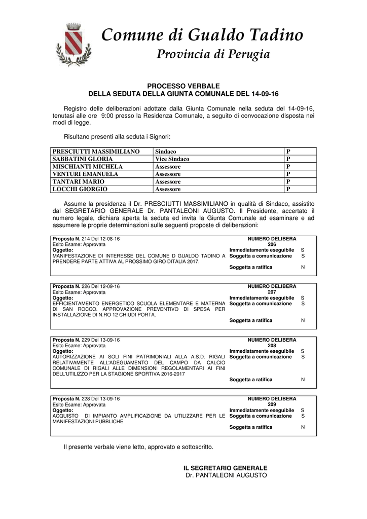 Verbale GIUNTA COMUNALE del 14.09.2016