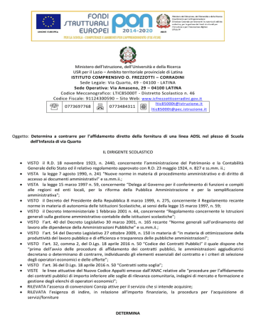 Determina affidamento diretto servizio ADSL Sc. Infanzia via Quarto