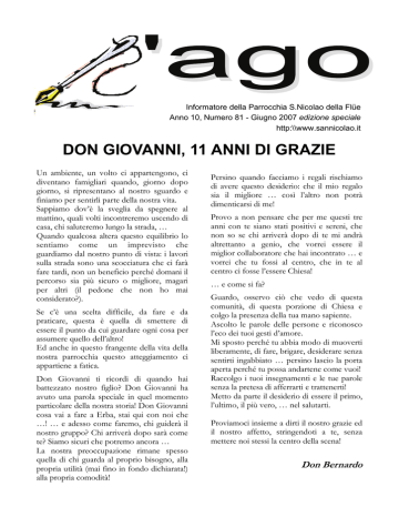 don giovanni, 11 anni di grazie - Parrocchia San Nicolao della Flue