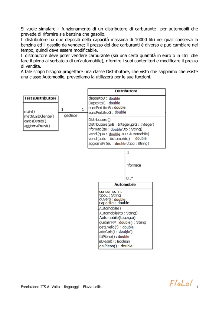 macchina, e restituisce i litri erogati : usando i metodi di automobile ricava il tipo