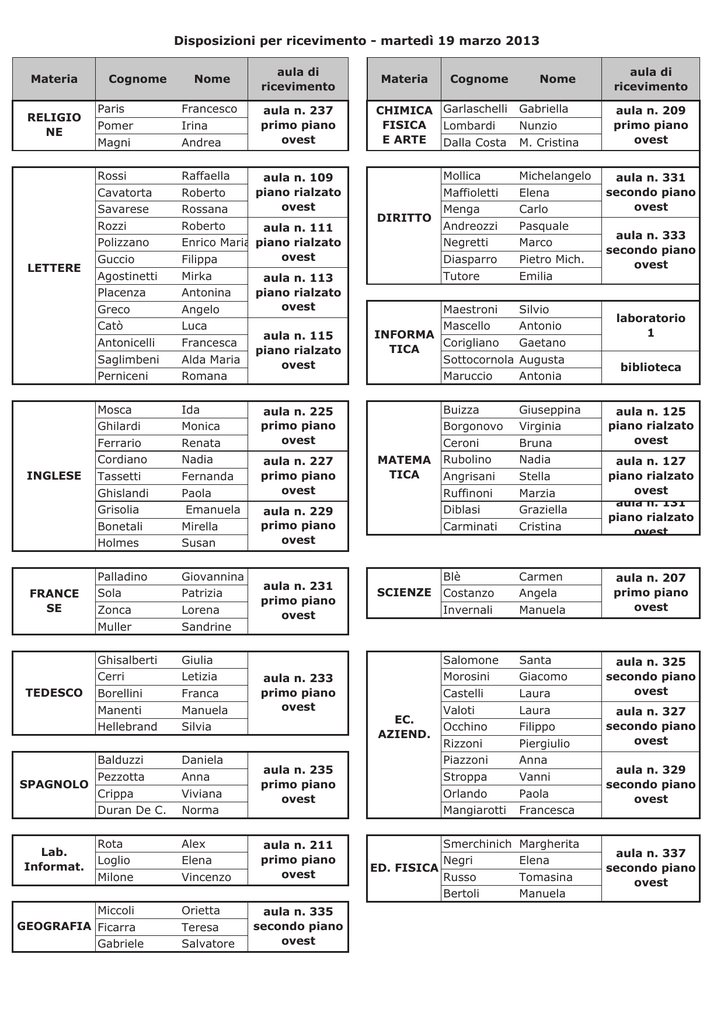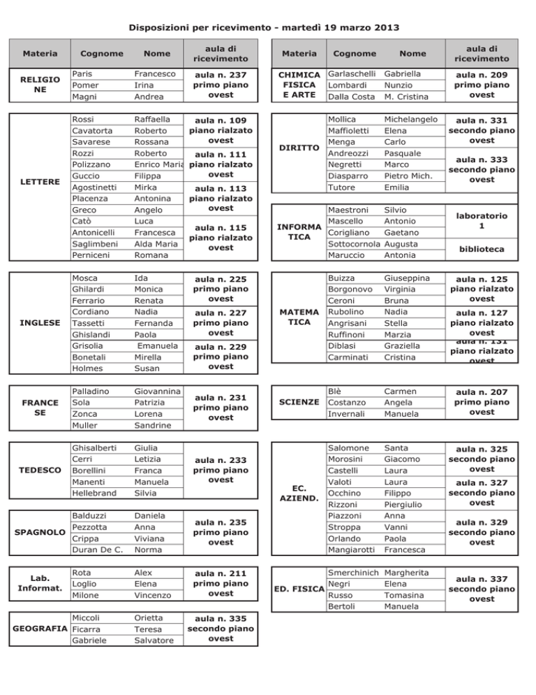 Disposizioni per ricevimento