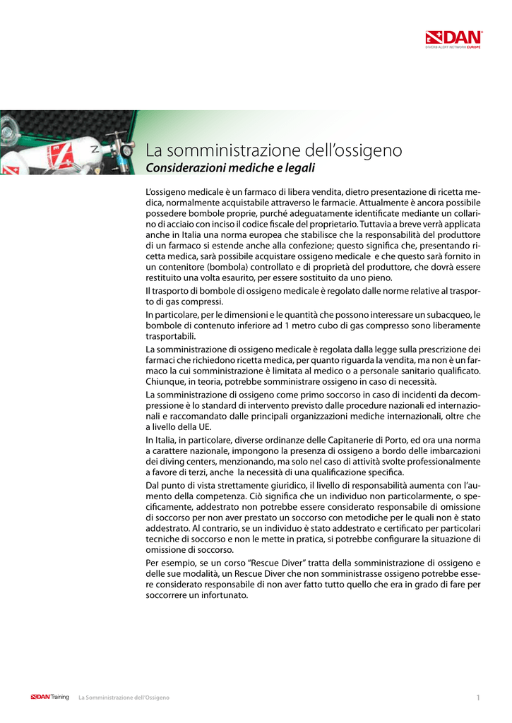 Documento del DAN sulla somministrazione dell`ossigeno.