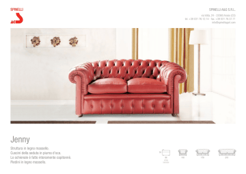 SPINELLI A&G S.R.L. via Volta, 24 - 22060 Arosio (CO) tel. +39 031 76.12.14 - fax. +39 031 76.37.71 [email protected] Jenny Struttura in legno massello. Cuscini della seduta in piuma d’oca. Lo schienale è fatto interamente capitonnè. Piedini in legno massello.