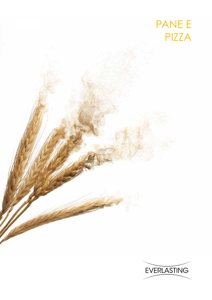 PANE E PIZZA Una storia di famiglia che dura tutt’ora. A family history that still lasts. Anno 1956 - Year 1956... ...Oggi - Today Everlasting è oggi una delle aziende leader in Italia nella produzione di elementi refrigerati per impianti di ristorazione collettiva. In particolare è specializzata nella produzione di frigoriferi, armadi frigoriferi, tavoli frigoriferi, vetrine pizza, fabbricatori di ghiaccio, celle frigorifere, abbattitori di temperatura e altre attrezzature per la refrigerazione professionale. Everlasting is one of the leading companies in Italy in the field of the production of refrigerated units for catering facilities. In particular, it is a specialist in the production of refrigerated cabinets, refrigerated working tables, showcases for pizza, ice makers, cold rooms, blast chillers and other equipment for professional refrigeration. Playing a leading role in the national market, Protagonista su tutto il mercato nazionale, Everlasting è fortemente presente anche all’estero nei Paesi CEE, in Africa e in Medio ed Estremo Oriente. Questo solido posizionamento sul mercato è il risultato di più di cinquant’anni di esperienza nel campo della refrigerazione professionale oltre che del costante impegno a proporre sul mercato soluzioni sempre innovative e di qualità, esclusivamente Made in Italy. Everlasting is also strongly placed abroad, in the EC, Africa and in the Middle and Far East. This remarkable result has been achieved thanks to more than fifty years of professional experience in refrigeration, as well as to a constant commitment to providing the market with innovative and high-quality solutions, of course all Made in Italy. Qualità ed efficienza, infatti, sono le parole chiave che guidano tutta la nostra produzione la quale è finalizzata a proporre una gamma mirata di attrezzature affidabili e capaci di organizzare lo spazio nella maniera più funzionale. I prodotti possono essere suddivisi in cinque linee principali che corrispondono alle aree professionali a cui l’azienda si rivolge: linea Ristorante, linea Paticceria-GelateriaCioccolato, linea Panificazione, linea Pizzeria e linea Food&Beverage. A queste si aggiungono una vasta gamma di attrezzature di complemento ESPERIENZA, TECNOLOGIA AVANZATA, PRECISIONE, EFFICIENZA, DESIGN ELEGANTE e RISPETTO PER L’AMBIENTE. Quality and efficiency are, in fact, the key words guiding our production, whose target is to offer a range of reliable equipment aimed at organizing the working space in the most functional way ever. Our products can be divided into five main lines, matching the professional areas to which the company addresses: Ristorante, Pastry-Chocolate-Ice Cream, Bakery, Pizzeria, Food & Beverage. In addition, it is also available a wide range of supplementary equipment. EXPERIENCE, ADVANCED TECHNOLOGY, ACCURACY, EFFICIENCY, CHIC DESIGN AND ECOLOGY Panificazione Bakery solutions Gli specialisti della Panificazione scelgono Everlasting Bakery specialists choose Everlasting I nuovi sistemi del “freddo” per gli specialisti dell’Arte Bianca The new “cold” systems for bakery professionals L’impiego del freddo nella moderna tecnologia della panificazione nasce dalle nuove esigenze lavorative il cui principale obiettivo è quello di evitare il lavoro notturno e festivo. The use of cold processes in modern baking technology arises from the new production needs, whose main goal is to avoid night and holiday work. La FERMALIEVITAZIONE: La fermentazione controllata viene utilizzata per gli impasti di pane e pasticceria attraverso l’opportuna gestione della temperatura, dell’umidità e del tempo. LEAVENING CONTROL: Controlled fermentation is generally used for pastry and bread dough, and consists in an accurate management of temperature, humidity and time. Gli Armadi ed i Tavoli Fermalievitazione Everlasting bloccano o rallentano l’attività fermentativa del lievito, mantengono l’impasto in questo stato fino ad un massimo di 72 ore, ed infine iniziano automaticamente la fase di fermentazione all’orario stabilito dal programma. Everlasting refrigerated cabinets and tables for leavening control are able to stop or slow down the fermentative activity of yeast and to keep the dough in such stable conditions for maximum 72 hours. The fermentation phase then automatically starts at the time set by the program. L’intero processo è suddiviso in 4 fasi: The whole process consists into 4 steps: - Raffreddamento - Conservazione - Pre-lievitazione - Lievitazione - Cooling - Storage - Pre-leavening - Leavening Temp. +30° C +0°C -10°C Raffreddamento Cooling -5° / -10° C Hr --4-6h Conservazione Storage +2° C Hr 70 % >72< h Pre-lievitazione Pre-leavening +13° C Hr 80 % 1-2 h Lievitazione Leavening +28° C Hr 85 - 90 % 2-3 h I vantaggi della FERMALIEVITAZIONE The advantages of LEAVENING CONTROL Eliminazione del lavoro notturno in quanto il panettiere impasta e prepara durante il giorno i vari tipi di pane crudo, lo introduce negli apparecchi fermalievitazione e, attraverso una semplice programmazione, rimanda la lievitazione in automatico di primo mattino in modo che al suo arrivo il pane sia già pronto per essere infornato. Elimination of night work, because the baker kneads and prepares the different kinds of raw bread during the day, then introduces them in the leavening control appliance and automatically delays the leavening process through simple programming, so that when he arrives early in the morning, the bread is ready to be baked. Miglioramento della qualità del prodotto in quanto la lunga lievitazione conferisce più sapore al pane e ne allunga la durata. Improved product quality, because a long leavening process gives the bread more flavour and lengthens its duration. Maggiori profitti grazie alla razionalizzazione del processo produttivo che produce un risparmio sulla quantità del lievito utilizzato e ha come risultato l’azzeramento delle rimanenze di pane a fine giornata. Enh
