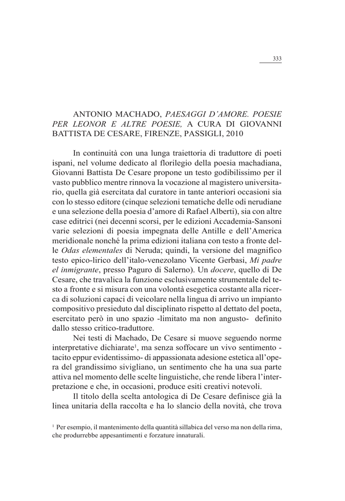 ispani, nel volume dedicato al florilegio della poesia machadiana,