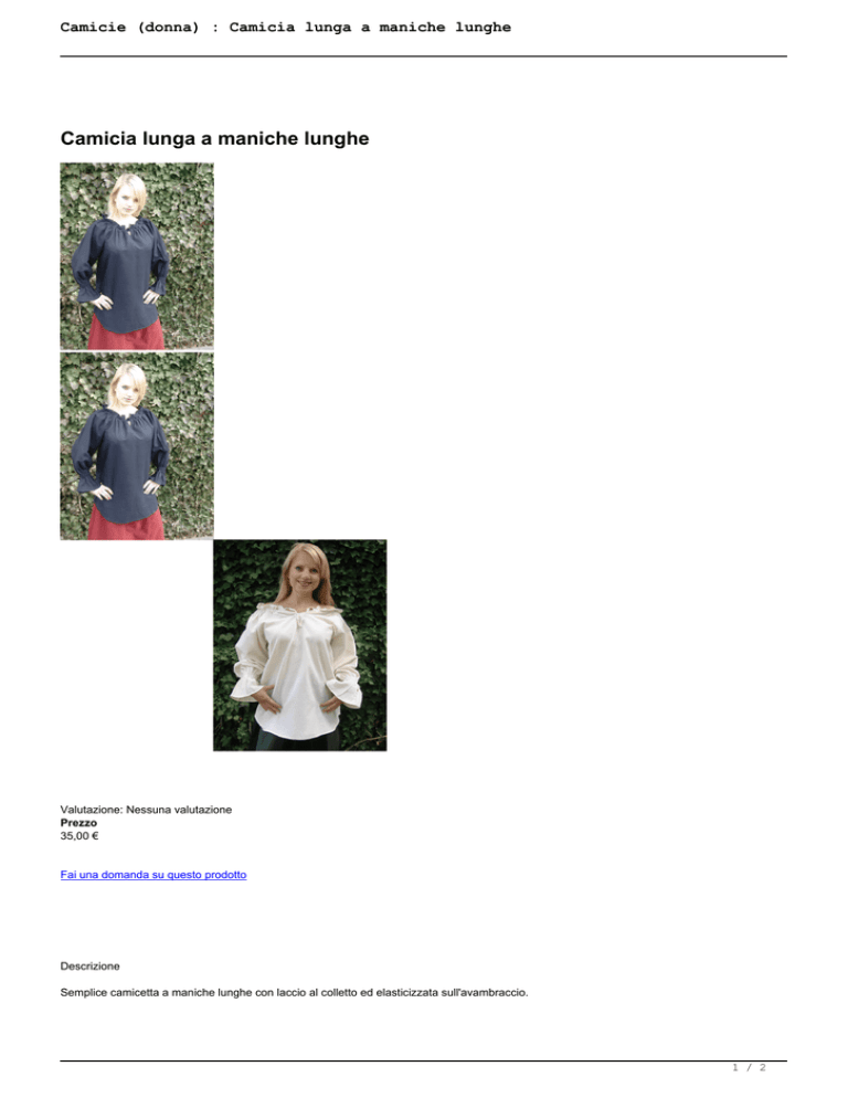 Camicie (donna) : Camicia lunga a maniche lunghe