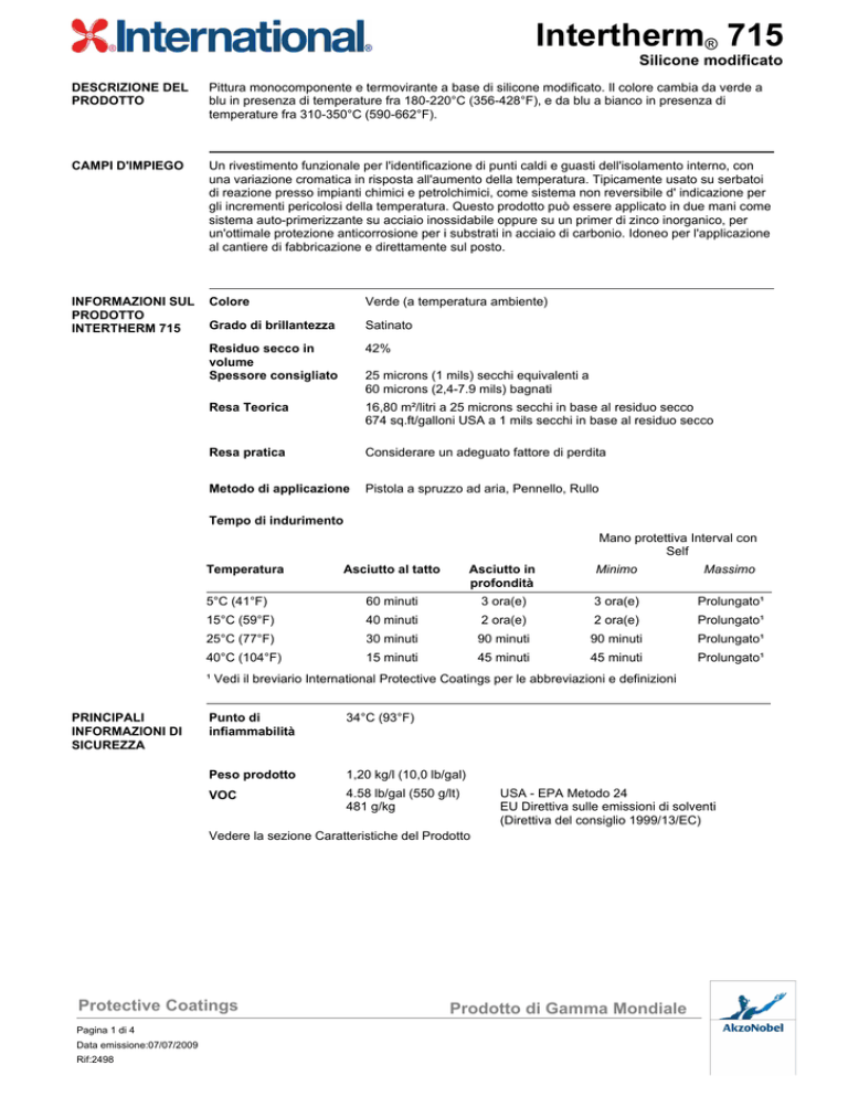 Se si usa l'Intertherm 715 sopra un primer zincante inorganico, applicarlo attenendosi fedelmente