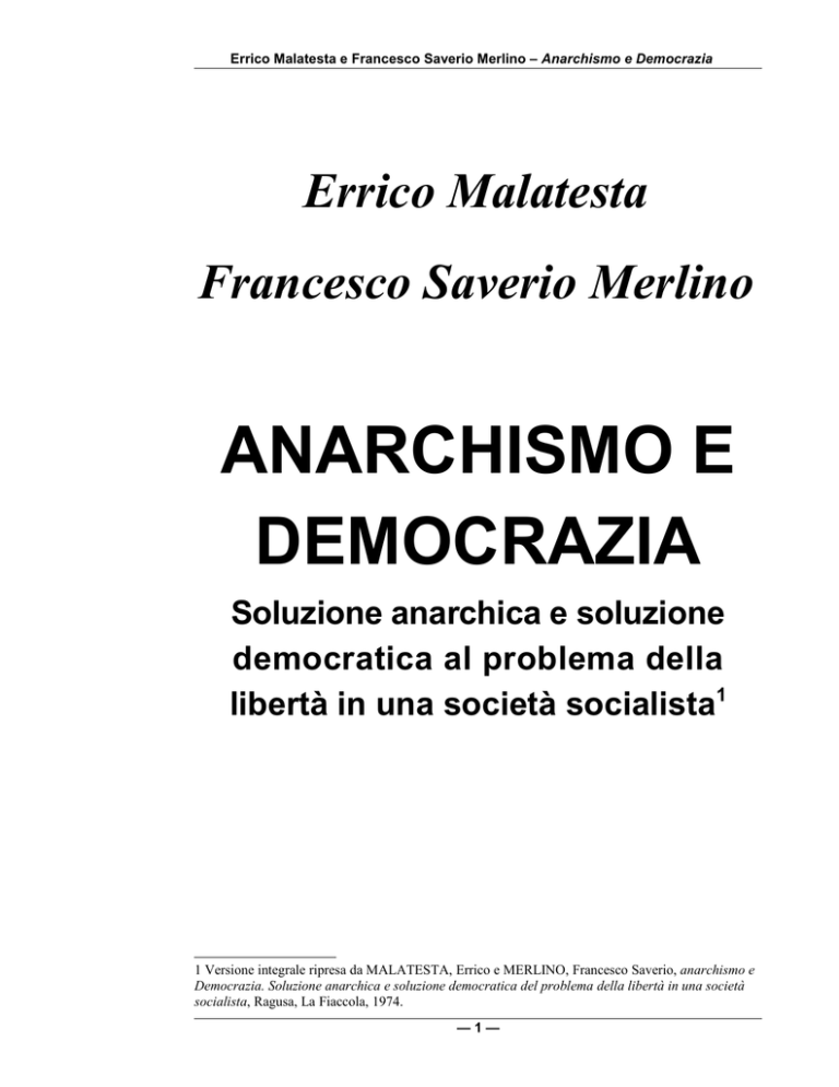 Anarchismo e democrazia - Centro Studi Francesco Saverio Merlino