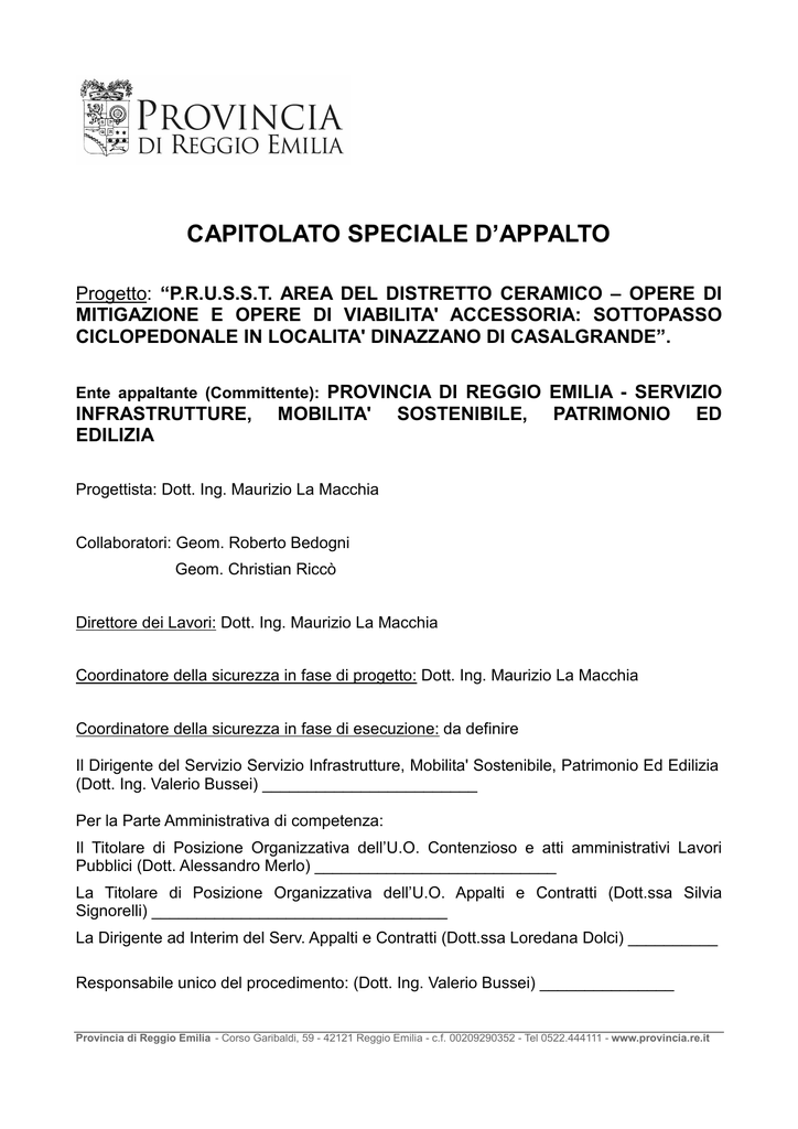 Ente appaltante (Committente): PROVINCIA DI REGGIO EMILIA - SERVIZIO