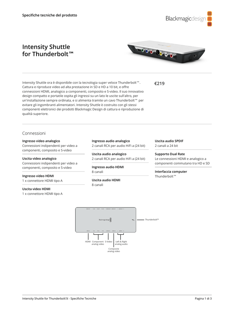 Blackmagic Design: UltraStudio Thunderbolt™ Specifiche Tecniche