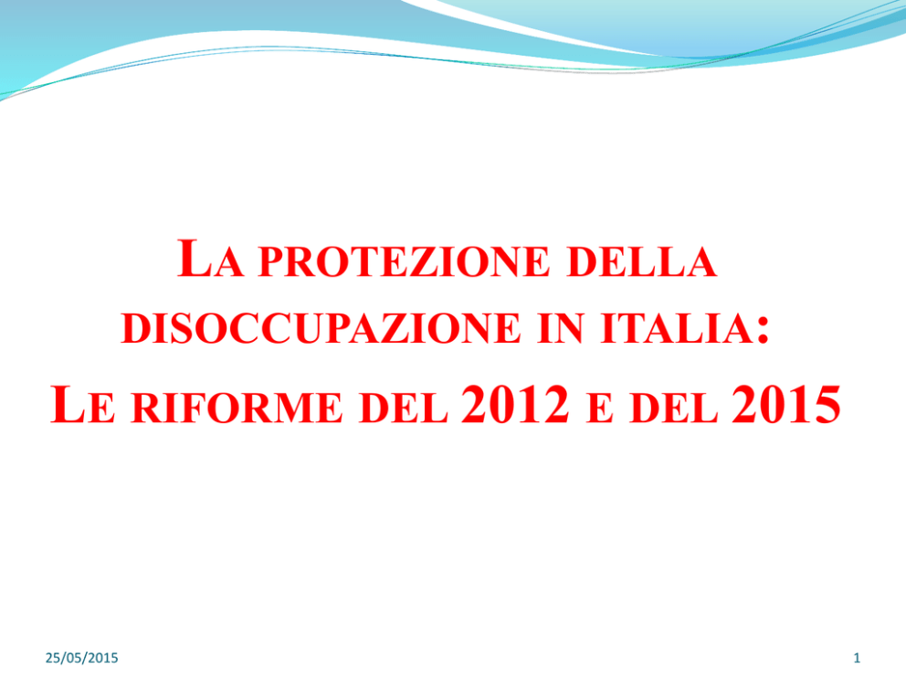 LA PROTEZIONE DELLA DISOCCUPAZIONE IN ITALIA: LE RIFORME DEL 2012 E DEL 2015 25/05/2015 1 L’ASSICURAZIONE CONTRO LA DISOCCUPAZIONE IN ITALIA: LE RAGIONI DI UNA RIFORMA 1) Quale inclusione? La maggior parte dei disoccupati NON godeva di un sostegno al reddito 2) Quale generosità? Tassi di rimpiazzo e durata estremamente variabili 3) Quanto spendiamo per i disoccupati? La quota più bassa del PIL fra i maggiori paesi dell’UE: 2,9% (media UE28 nel 2011: 5,6%*) *Fonte: Eurostat, novembre 2013 25/05/2015 2 Disoccupazione e mercato del lavoro Diminuisce la flessibilità in entrata MA aumenta la flessibilità in uscita Per i neoassunti con il contratto di lavoro a tempo indeterminato a tutele crescenti si ridimensionano le tutele NEL rapporto di lavoro, circoscrivendo il campo di applicazione della reintegrazione (licenziamenti nulli e discriminatori, e specifiche fattispecie di licenziamento disciplinare ingiustificato) e introducendo una tutela monetaria crescente È necessario rafforzare le tutele NEL mercato del lavoro, per assistere il disoccupato nei periodi di non lavoro e aiutarlo nel reperimento di una nuova occupazione Tutto ciò a costo zero (neutralità finanziaria) ovvero con individuazione dei nuovi o maggiori oneri a carico della finanza pubblica e dei corrispondenti mezzi di copertura (art. 81, par. 3, Cost.: “Ogni legge che importi nuovi o maggiori oneri provvede ai mezzi per farvi fronte”) 25/05/2015 3 ISTAT – OCCUPATI E DISOCCUPATI Dati relativi all’anno 2014 (2.3.2015) Il tasso di disoccupazione in Italia è del 12,7% (+0,6% rispetto alla media 2013); L’incidenza della disoccupazione di lunga durata (12 mesi o più) si situa al 60,7% (+ 4,3% rispetto alal media 2013) Si registra una percentuale elevata di disoccupazione giovanile (42,7%, + 2,6% rispetto alla media 2013) per la fascia di età 15-24 anni (I Paesi membri con il tasso di disoccupazione giovanile minore sono la Germania (7,1%), Austria (8,2%), e la Danimarca (10,8%), mentre quelli con il tasso più elevato insieme all’Italia, sono Spagna (50,9%), Grecia (50,6% nel novembre 2014), e Croazia (44,1% nell’ultimo trimestre)*. Il tasso di inattività si situa al 36,1% (-0,6% su base annua. La riduzione interessa principlamente la popolazione femminile) * Dati Eurostat, situazione al gennaio 2015 4 L’ECCEDENZA DI PERSONALE PUÒ ESSERE: Temporanea - Occorre un sostegno a I e L necessario a superare il momento temporaneo di difficoltà - La Cassa Integrazione Guadagni Ordinaria e Straordinaria 25/05/2015 Definitiva - Licenziamento individuale/collettivo - Occorrono strumenti di sostegno a favore dei lavoratori espulsi - Gli ammortizzatori sociali (dall’Aspi alla Naspi) 5 DISOCCUPAZIONE E SOSPENSIONE DEL RAPPORTO DI LAVORO: I DIVERSI STRUMENTI DI TUTELA Sospensione temporanea dal lavoro “qualificata”: Disoccupazione (perdita del lavoro) indennita’ di mobilita’ + Cassa integrazione guadagni ordinaria e straordinaria + fondi di solidarieta’ (l. 92/2012) 25/05/2015 trattamento ordinario di disoccupazione + trattamento a requisiti ridotti/ Aspi e miniAspi (l. n. 92/2012) Naspi e Asdi (l. n. 183/2014) 6 GLI STRUMENTI DI SOSTEGNO AL REDDITO: UN QUADRO DI SINTESI CASSA INTEGRAZIONE GUADAGNI (CIG): Strumento volto a salvaguardare, durante fasi di contrazione dell’attività aziendale, la sopravvivenza dell’impresa e l’occupazione dei lavoratori tramite sospensione dei rapporti di lavoro assistita dall’intervento di una prestazione indennitaria (è circoscritto al lavoro subordinato e copre solo una parte di questo). Le riforme del 2012 e 2014-15 mirano a razionalizzare la normativa in materia d'integrazione salariale. La legge 92/12 ha istituito i Fondi di solidarietà per i settori non coperti dalla CIG, sia in seno ai sistemi della bilateralità consolidata, sia, per tutti gli altri, in seno all’INPS (Cfr. l. 92/12, art. 3 co. 19 e ss.). INDENNITA’ DI MOBILITA’: Strumento volto a ridurre gli effetti della disoccupazione del lavoratore causata da un licenziamento collettivo, posto in essere da specifiche imprese, in vista di un suo ricollocamento. Sarà abolita dal 1° gennaio 2017 (l. n. 92/2012) INDENNITA’ DI DISOCCUPAZIONE: Strumento volto a ridurre gli effetti della disoccupazione involontaria. Dal 1° gennaio 2013 è sostituita dall’ASpI; dal 1° maggio 2015 l’Aspi sara sostituita dalla NASpI 25/05/2015 7 LA RIFORMA DEI TRATTAMENTI DI DISOCCUPAZIONE: GLI OBIETTIVI PRINCIPALI Gli interventi riguardano sia le tutele in costanza di rapporto di lavoro (Cigo, Cigs, fondi di solidarietà) sia, soprattutto, quelle in caso di perdita del lavoro Obiettivo della RIFORMA DEL 2012: migliorare l’efficienza, la coerenza e l’equità dei trattamenti di disoccupazione e delle politiche attive per il lavoro, in una prospettiva di universalizzazione della protezione e di rafforzamento dell’occupabilità Obiettivo della RIFORMA DEL 2014: omogeneizzare le discipline previgenti; assicurare, in caso di disoccupazione involontaria, tutele uniformi e legate alla storia contributiva dei lavoratori; incrementare la durata massima per i lavoratori con carriere contributive piu' rilevanti; universalizzare il campo di applicazione dell'ASpI; favorire il coinvolgimento attivo degli espulsi dal mercato del lavoro ovvero dei beneficiari degli ammortizzatori sociali In entrambi gli interventi è forte l’esigenza di razionalizzare e rafforzare il collegamento con le politiche attive del lavoro 25/05/2015 8 L’estinzione del rapporto di lavoro. L’evoluzione degli strumenti, in sintesi Trattamento di disoccupazione ordinario (anni ‘30); Dal 2013: Indennità di mobilità (1991); Aspi Trattamento a requisiti ridotti (1988); 25/05/2015 MiniAspi Dal 1 maggio 2015: Naspi Asdi 9 LA RIFORMA DEI TRATTAMENTI DI DISOCCUPAZIONE: LE MODALITÀ DI REALIZZAZIONE LEGGE n. 92/2012 Modalità: Introduzione di un’unica prestazione (ASpI), rafforzata nella misura e nella durata di percezione (rispetto al precedente 