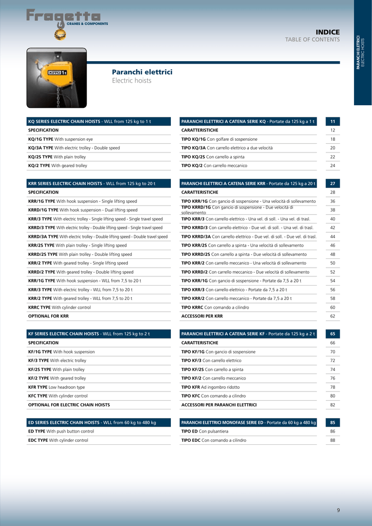 INDICE Paranchi elettrici Electric hoists