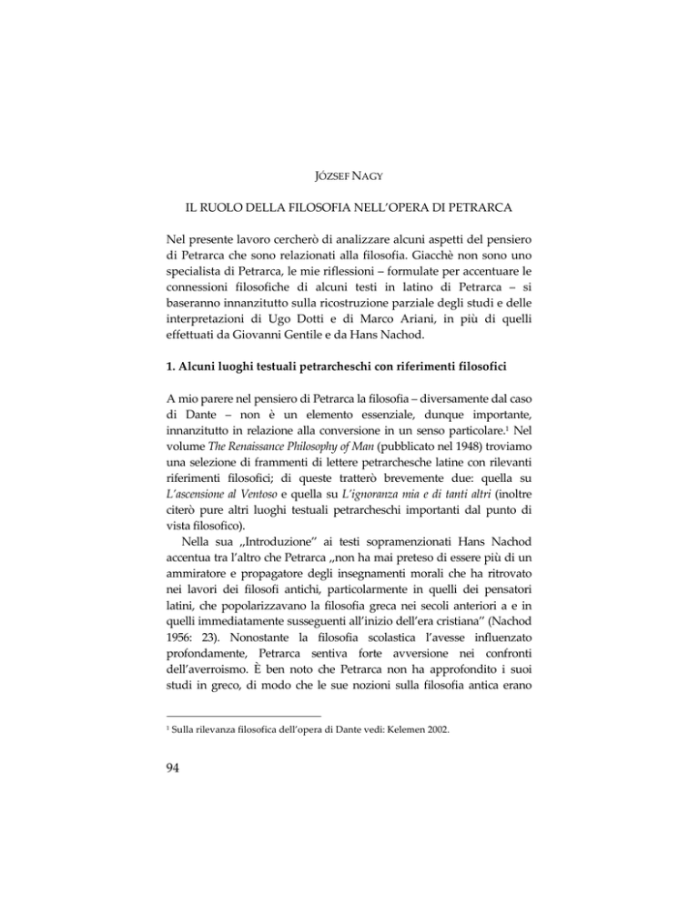 IL RUOLO DELLA FILOSOFIA NELL`OPERA DI PETRARCA Nel
