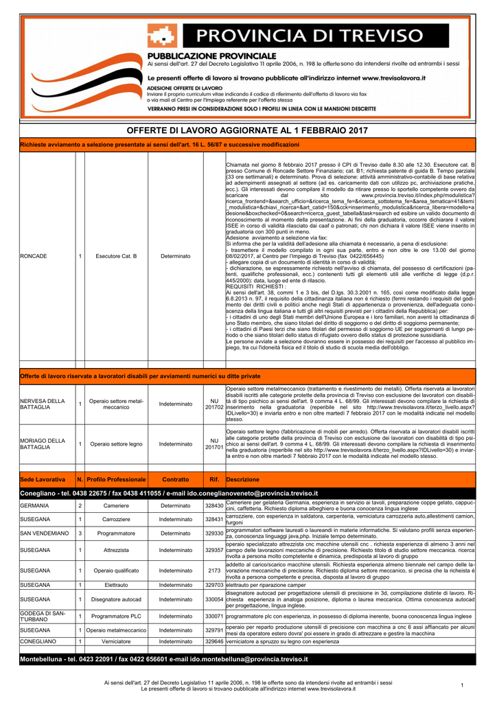 offerte di lavoro aggiornate al 1 febbraio 2017