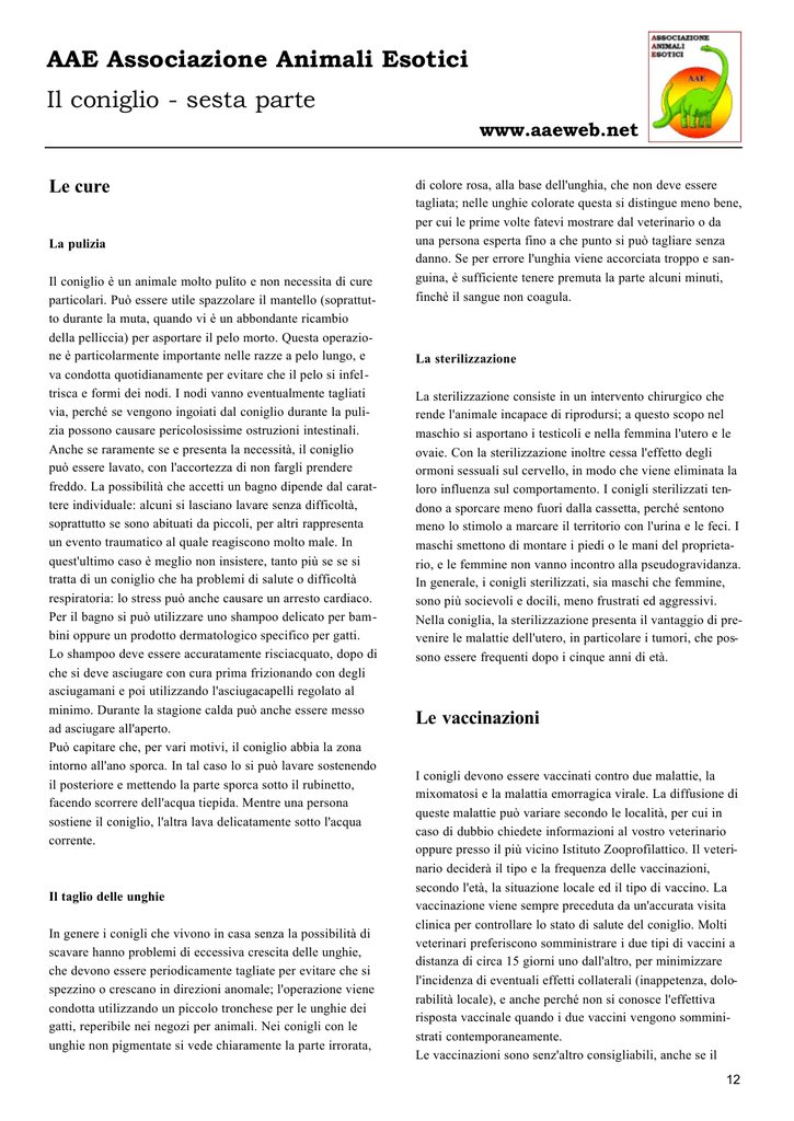 AAE Associazione Animali Esotici Il coniglio - sesta