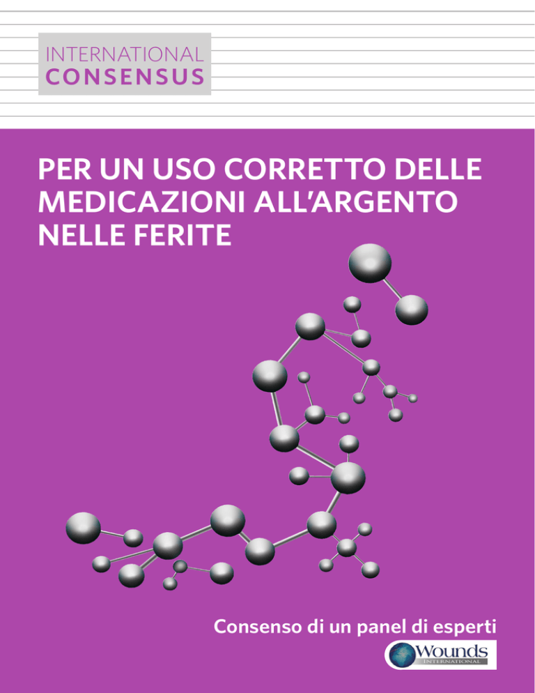 INTERNATIONAL CONS E N S U S PER UN USO CORRETTO DELLE MEDICAZIONI ALL’ARGENTO NELLE FERITE Consenso di un panel di esperti REDATTORE: Lisa MacGregor EDITORE: Kathy Day PUBBLICATO DA: Wounds International Enterprise House 1–2 Hatfields London SE1 9PG, UK Tel: + 44 (0)20 7627 1510 Fax: +44 (0)20 7627 1570 [email protected] www.woundsinternational.com © Wounds International 2012 Questo documento è stato elaborato dalla Wounds International e finanziato grazie al contributo non vincolante di B Braun, ConvaTec e Systagenix. Le opinioni ivi espresse sono quelle del panel di esperti e del comitato di revisione e non riflettono necessariamente quelle di B Braun, ConvaTec e Systagenix. Per citare il presente documento International consensus. Per un uso corretto delle medicazioni all’argento nelle ferite. Consenso di un panel di esperti. London: Wounds International, 2012. È possibile scaricare il presente documento dal sito: www.woundsinternational.com PREMESSA Le medicazioni antimicrobiche topiche, comprese quelle all’argento, vengono utilizzate per la prevenzione e il trattamento delle infezioni in numerose tipologie di ferite. Sebbene le medicazioni all’argento siano ormai ampiamente utilizzate, le conclusioni di un recente studio1 e di due revisioni Cochrane2,3 indicano che non esistono prove sufficienti a dimostrazione del fatto che riescano a migliorare il tasso di guarigione. L’effetto complessivo di questi studi è stato di insinuare il dubbio nella mente degli acquirenti nel settore sanitario e di far diminuire la disponibilità delle medicazioni all’argento in tutto il mondo. Gli specialisti sono sempre più preoccupati che il ritiro arbitrario delle medicazioni all’argento possa provocare un aumento della morbosità e un prolungamento dei tempi di trattamento a causa del mancato controllo della carica batterica della ferita. Nel dicembre 2011 un gruppo di esperti provenienti da Europa, Nord America, Estremo Oriente, Sudafrica e Australia si è riunito per elaborare delle linee guida di validità internazionale in merito all’uso corretto delle medicazioni all’argento, basandosi sull’esperienza diretta della pratica clinica e su tutti i dati comprovati disponibili. Il presente documento illustra il meccanismo di funzionamento delle medicazioni all’argento, descrive il rapporto tra le evidenze in vitro e in vivo da una parte e la pratica clinica dall’altra e fornisce la motivazione per un trattamento conveniente in termini di costo/efficacia. A seguito del consensus meeting è stato elaborato un documento preliminare, sottoposto poi a un’accurata revisione da parte del panel di esperti. Sono stati inoltre consultati altri esperti internazionali per ottenere un riscontro sulla pratica medica da diverse parti del mondo. Tutti i membri del panel di esperti allargato hanno quindi espresso il loro consenso su tutte le conclusioni presentate nel documento. Professor David Leaper • PANEL DI ESPERTI Elizabeth A Ayello, Excelsior College School of Nursing, Albany, New York (USA) Keryln Carville, Silver Chain Nursing Association & Curtin University, Osborne Park, Perth (Australia) Jacqui Fletcher, Section of Wound Healing, Cardiff University (RU) David Keast, Aging Rehabilitation and Geriatric Care Research Centre, St Joseph's Parkwood Hospital, London, Ontario (Canada)(Copresidente) David Leaper, Wound Healing Research Unit, Cardiff University (RU) (Presidente) Christina Lindholm, Sophiahemmet University College, Karolinska University Hospital, Stockholm (Svezia) José Luis Lázaro Martínez, Diabetic Foot Unit, Complutense University, Madrid (Spagna) Silindile Mavanini, Inkosi Albert Luthuli Central Hospital, Durban (Sudafrica) Andrew McBain, School of Pharmacy and Pharmaceutical Sciences, University of Manchester (RU) Zena Moore, Faculty of Nursing & Midwifery, Royal College of Surgeons in Ireland, Dublin (Irlanda) Supaporn Opasanon, Division of Trauma Surgery and Burn Unit, Department of Surgery, Siriraj Hospital, Mahidol University (Tailandia) Elaine Pina, National Programme for Infection Control, Directorate General of Health, Lisbon (Portogallo) COMITATO DI REVISIONE Valerie Edwards-Jones, School of Research, Enterprise and Innovations, Faculty of Science and Engineering, Manchester Metropolitan University, Manchester (RU) Jenny Hurlow, Plastic Surgery Group of Memphis, Tennessee (USA) Medicazioni all’argento — attuali problemi SPIEGAZIONE DEI TERMINI FREQUENTI Batteriostatico: previene la crescita o la riproduzione dei batteri Battericida: distrugge i batteri Oligodinamico: attivo o efficace anche in piccolissime quantità In vivo: esperimento eseguito sull’animale vivo In vitro: esperimento eseguito su parti di animali o di organismi Tolleranza agli antimicrobici: i batteri presenti nel biofilm possono assumere lo stato di cellule dormienti, con conseguente rallentamento del metabolismo, che li rende meno sensibili agli effetti degli antimicrobici. Antibiotico-resistenza: capacità dei batteri di evitare gli effetti dannosi dei farmaci antibiotici attuando mutazioni genetiche STORIA DELL’ARGENTO L’argento viene utilizzato come agente antimicrobico topico nel trattamento delle ferite da centinaia di anni4. È usato ad esempio in forma elementare solida per prevenire o curare le infezioni (per es., filo di argento inserito nelle ferite), in forma di sali di argento in soluzione per disinfettare le ferite (per es., soluzione di nitrato d’argento) e in tempi più recenti in forma di pomata o unguento contenente composti a base di argento-antibiotico (sulfadiazina argentica [SSD] in pomata). La soluzione di nitrato d’argento è attualmente meno diffusa, mentre l’SSD svolge da parecchi anni un ruolo importante nel trattamento delle ustioni5. La pomata con SSD ha però una durata di azione relativamente ridotta, deve essere riapplicata almeno una volta al giorno ed è poco pratica e richiede tempo per essere applicata e rimossa. Negli ultimi anni
