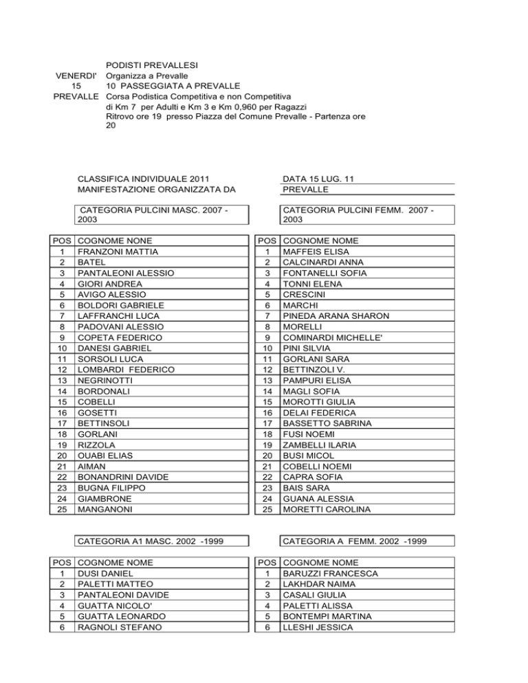 PODISTI PREVALLESI VENERDIr Organizza a Prevalle 15 10