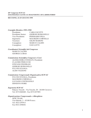 28° Congresso SCIVAC EMATOLOGIA CLINICA E DIAGNOSTICA DI LABORATORIO RICCIONE, 22-25 GIUGNO 1995 Consiglio Direttivo 1995-1998 Presidente: CARLO SCOTTI Presidente Senior: GIORGIO ROMANELLI Vice Presidente: PIERMARIO PIGA Segretario: MAURIZIO CORNELLI Tesoriere: GILDO BARONI Consigliere: MARCO CALDIN Consigliere: UGO LOTTI Coordinatori Scientifici del Congresso MARCO CALDIN GEORGE LUBAS Commissione Scientifica Congressi e Corsi ALESSANDRA FONDATI, Presidente CLAUDIO PERUCCIO STEFANO PIZZIRANI GIORGIO ROMANELLI FULVIO STANGA ALDO VEZZONI Commissione Congressuale Organizzativa SCIVAC FULVIO STANGA, Presidente MAURIZIO CORNELLI LUCIANO COSTIGLIOLO ERNESTO FIORE Segreteria SCIVAC Palazzo Trecchi - Via Trecchi, 20 - 26100 CREMONA Tel. 0372/460440 - Fax 0372/457091 Organizzazione Congressuale e Alberghiera NEW TEAM Via Ghiretti, 2 - 43100 PARMA Tel. 0521/293913 Fax 0521/294036 1 28° Congresso SCIVAC EMATOLOGIA CLINICA E DIAGNOSTICA DI LABORATORIO RICCIONE, 22-25 GIUGNO 1995 La SCIVAC è particolarmente grata alla ditta WALTHAM per il significativo contributo fornito alla realizzazione del Congresso. 4 28° Congresso SCIVAC EMATOLOGIA CLINICA E DIAGNOSTICA DI LABORATORIO RICCIONE, 22-25 GIUGNO 1995 INDICE SALUTO AI PARTECIPANTI E INAUGURAZIONE DELL’INCONTRO . . . . . . .pag. 7 INFORMAZIONI . . . . . . . . . . . . . . . . . . . . . . . . . . . . . . . . . . . . . . . . . . . . . . . . . . . . .pag. 9 RELATORI . . . . . . . . . . . . . . . . . . . . . . . . . . . . . . . . . . . . . . . . . . . . . . . . . . . . . . . . . .pag. 14 PROGRAMMA DELLE RELAZIONI . . . . . . . . . . . . . . . . . . . . . . . . . . . . . . . . . . . . .pag. 17 ALTERAZIONI DEGLI ERITROCITI Urs Giger . . . . . . . . . . . . . . . . . . . . . . . . . . . . . . . . . . . . . . . . . . . . . . . . . . . . . . . . . . . .pag. 21 ALTERAZIONI DEI GLOBULI BIANCHI Craig E. Greene . . . . . . . . . . . . . . . . . . . . . . . . . . . . . . . . . . . . . . . . . . . . . . . . . . . . . . .pag. 31 ALTERAZIONI DELLE PIASTRINE Urs Giger . . . . . . . . . . . . . . . . . . . . . . . . . . . . . . . . . . . . . . . . . . . . . . . . . . . . . . . . . . . .pag. 55 ALTERAZIONI DEI PROCESSI DI COAGULAZIONE Craig E. Greene . . . . . . . . . . . . . . . . . . . . . . . . . . . . . . . . . . . . . . . . . . . . . . . . . . . . . . .pag. 65 PRINCIPALI MALATTIE EREDITARIE DEL SANGUE Urs Giger . . . . . . . . . . . . . . . . . . . . . . . . . . . . . . . . . . . . . . . . . . . . . . . . . . . . . . . . . . . .pag. 91 TERAPIA TRASFUSIONALE: L’ESPERIENZA ITALIANA George Lubas . . . . . . . . . . . . . . . . . . . . . . . . . . . . . . . . . . . . . . . . . . . . . . . . . . . . . . . . .pag. 103 ALTERAZIONI DEGLI EQUILIBRI FLUIDO-ELETTROLITICI E ACIDO-BASE Jeanne Barsanti . . . . . . . . . . . . . . . . . . . . . . . . . . . . . . . . . . . . . . . . . . . . . . . . . . . . . . .pag. 111 5 28° Congresso SCIVAC EMATOLOGIA CLINICA E DIAGNOSTICA DI LABORATORIO RICCIONE, 22-25 GIUGNO 1995 PROFILO PANCREATICO (QUADRI ACUTO E CRONICO) Jeanne Barsanti . . . . . . . . . . . . . . . . . . . . . . . . . . . . . . . . . . . . . . . . . . . . . . . . . . . . . . .pag. 135 PROFILO EPATICO Marco Caldin . . . . . . . . . . . . . . . . . . . . . . . . . . . . . . . . . . . . . . . . . . . . . . . . . . . . . . . . .pag. 157 PROFILO ENDOCRINO Craig E. Greene . . . . . . . . . . . . . . . . . . . . . . . . . . . . . . . . . . . . . . . . . . . . . . . . . . . . . . .pag. 165 VALUTAZIONE DELLO STATO NUTRIZIONALE DALLE INDAGINI DI LABORATORIO DI ROUTINE Tim Watson . . . . . . . . . . . . . . . . . . . . . . . . . . . . . . . . . . . . . . . . . . . . . . . . . . . . . . . . . .pag. 199 PROFILO RENALE Jeanne Barsanti . . . . . . . . . . . . . . . . . . . . . . . . . . . . . . . . . . . . . . . . . . . . . . . . . . . . . . .pag. 225 6 28° Congresso SCIVAC EMATOLOGIA CLINICA E DIAGNOSTICA DI LABORATORIO RICCIONE, 22-25 GIUGNO 1995 Dal Presidente È con estremo piacere che mi accingo a redarre queste poche righe che vedono l’inizio della attività pubblica del Consiglio Direttivo che guiderà la SCIVAC fino al marzo del 1998. Le nostre iniziative culturali si fanno sempre più articolate. Seminari di base e avanzati, incontri dei Gruppi di Studio, giornate culturali regionali, corsi di base e avanzati. Tuttavia gli appuntamenti con i Congressi Nazionali rappresentano sempre il momento culminante dell’attività associativa. All’aggiornamento scientifico si accompagna la possibilità di incontrare Colleghi, scambiare opinioni, rivedere vecchi amici, confrontarsi tra realtà professionali diverse. Le tematiche scientifiche congressuali sono sempre di notevole interesse generale, tali da coinvolgere tutti i colleghi associati SCIVAC. Un esempio è l’Ematologia Clinica e la Diagnostica di Laboratorio, argomento di questo 28° Incontro SCIVAC. Tutti noi, sia che svolgiamo la nostra attività professionale singolarmente che in forma associata, sia che ci occupiamo di clinica chirurgica piuttosto che di clinica medica, abbiamo l’esigenza di avere una buona conoscenza delle possibilità che ci offre la diagnostica di laboratorio; allo stesso modo a nessuno di noi sfugge quanto l’ematologia abbia assunto una valenza sempre maggiore per una corretta diagnostica e per il riconoscimento di patologie che non ci sono ancora troppo chiare. A Riccione riteniamo di avere costruito la giusta occasione per fare il punto della situazione. Sono quindi certo di incontrarVi numerosi per trascorrere quattro giorni insieme, in un mix di aggiornamento scientifico, relax e svago. Con cordialità. Dr. Carlo Scotti Presidente SCIVAC 7 28° Congresso SCIVAC EMATOLOGIA CLINICA E DIAGNOSTICA DI LABORATORIO RICCIONE, 22-25 GIUGNO 1995 Iscrizione Le quote di iscrizione sono le seguenti (IVA compresa) Fino al 15 maggio Dopo il 15 maggio Soci SCIVAC L. 200.000 ❐ L. 300.000 ❐ Non Soci L. 400.000 ❐ L. 500.000 ❐ N.B.: La quota ridotta è valida solo per i soci SCIVAC in regola con i