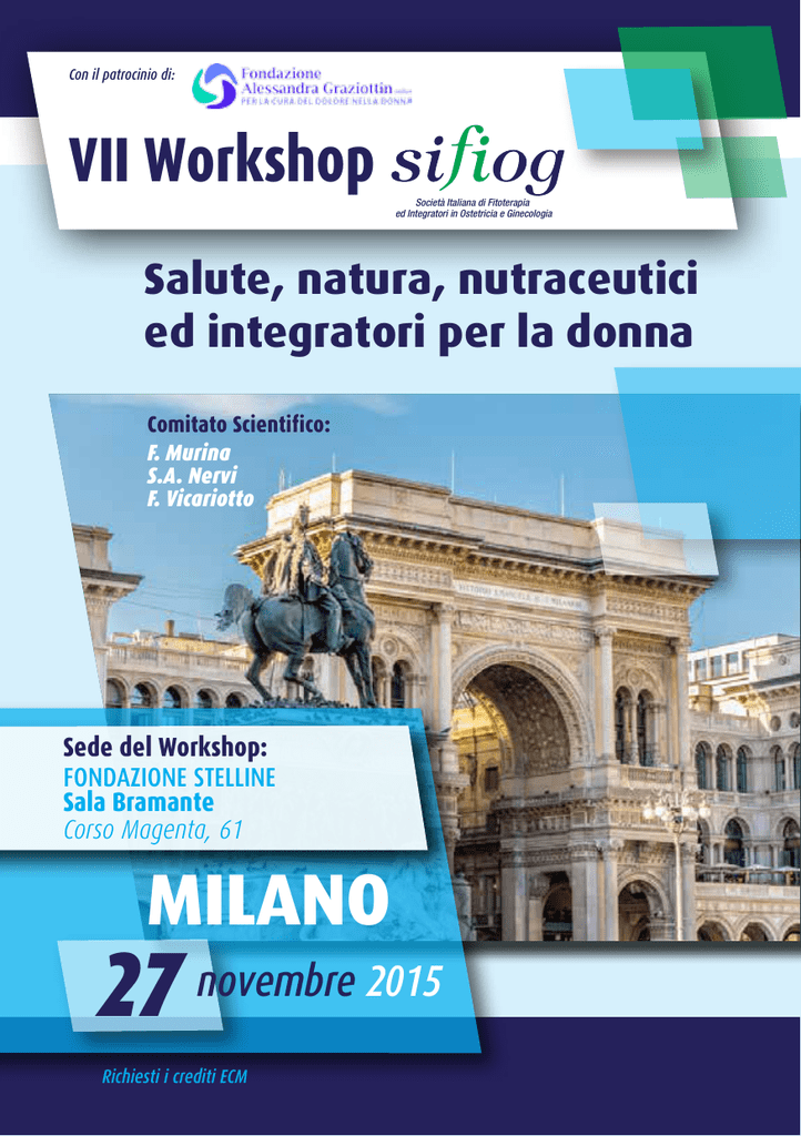 Con il patrocinio di: VII Workshop Società Italiana di Fitoterapia ed Integratori in Ostetricia e Ginecologia Salute, natura, nutraceutici ed integratori per la donna Comitato Scientifico: F. Murina S.A. Nervi F. Vicariotto Sede del Workshop: Fondazione StellinE Sala Bramante Corso Magenta, 61 MILANO 27 novembre 2015 Richiesti i crediti ECM Programma Workshop Venerdì 27 novembre 08:15 Registrazione partecipanti 08:45 Apertura dei lavori con saluto delle autorità Sessione d’Introduzione sui Nutraceutici ed Integratori per la Donna Reporter & Discussant:Franco Vicariotto (Milano) Daniela Giachetti (Siena) 09:00 Razionale integrativo nutraceutico in ostetricia e ginecologia Franco Vicariotto (Milano) 09:15Integratori per la donna. L’evoluzione dei prodotti e della regolamentazione Barbara Pacchetti (Milano) 09:30 Ruolo della nutrizione nella contraccezione ormonale Giuseppina Porcaro (Perugia) 09:45 Il ruolo dei farmaci vegetali per la salute ed il benessere della donna Daniela Giachetti (Siena) 10:05 Discussione Simposio Fondazione Alessandra Graziottin Dolore Genitale e pelvico iatrogeno Sessione su Implicazioni Uroginecologiche e Sessuali Reporter & Discussant:Alessandra Graziottin (Milano) Filippo Murina (Milano) 10:30 Dolore iatrogeno in ginecologia medica: prevenzione, diagnosi e cura Alessandra Graziottin (Milano) 11:00 Prevenzione del dolore pelvico in laparoscopia ginecologica: gli errori da non fare Mario Meroni (Milano) 11:30Dolore iatrogeno nel post-partum: prevenzione, diagnosi e cura Filippo Murina (Milano) 12:00 Riabilitazione uroginecologica e proctologica dopo il parto Arianna Bortolami (Padova) 12:30 Discussione 13:00 Ruolo del microbiota enterico nella salute della donna Paolo Mainardi (Genova) 13:30 Light Lunch Simposio Fondazione Claudio Nervi Proposta e Ricerca in Medicina Integrata Bio-Logica Sessione su Alimentazione, Nutraceutica e Salute: terapie integrate BioLogiche Reporter & Discussant: Sabrina Anna Nervi (Milano) Paolo Bellingeri (Alessandria) 14:30 Highlights probiotici in ostetricia e ginecologia Franco Vicariotto (Milano) 15:00Nutrire la fertilità tra stress ossidativo, sostanze tossiche e carenze enzimatiche: integrazione consapevole Annamaria Mattei (Milano) 15:30 Nutrimento è salute: tra mito, conoscenza e realtà Paolo Bellingeri (Alessandria) 16:00 Salute & benessere, non solo … omega (acido linoleico ed aging) Caterina Origlia (Bari) 16:30La salute si fa … micro: micronutrienti Sabrina Anna Nervi (Milano) 17:30 Conclusioni e compilazione test Ecm 2 VII Workshop Salute, natura, nutraceutici ed integratori per la donna Scheda d’iscrizione Da inviare entro il 10 Novembre 2015 per fax, e-mail a: u CG MKT - Via Cassia, 1110 - 00189 Roma Tel. 06 30090020 - Fax 06 30311303 - e-mail: [email protected] Crediti formativi (ECM) Il Workshop prevede l’accreditamento da parte del Ministero della Salute e l’attribuzione dei Crediti Formativi ECM per Medici Chirurghi (Endocrinologi, Ginecologi ed Ostetrici, Urologi, Medici di medicina generale) ed Ostetriche. Ai fini dell’erogazione dei crediti è necessario seguire il 100% dell’attività formativa. La scheda di valutazione ufficiale del Workshop deve essere compilata e consegnata in Segreteria al termine dei lavori scientifici, insieme al questionario di verifica dell’ apprendimento. Attestato di partecipazione Verrà rilasciato un attestato di partecipazione al Workshop. Iscrizione al Workshop: o Medici € 130,00 + IVA (€ 158,00 IVA inclusa) o Specializzandi ed Ostetriche € 80,00 + IVA (€ 97,00 IVA inclusa) Annullamento: Per documentate rinunce che giungeranno entro 30 giorni prima dell’evento verrà rimborsato il 50% della somma versata, nessun rimborso verrà effettuato dopo tale data. Nome ...............................................................................Cognome ......................................................................................... Luogo di nascita .......................................................................................................................................................................... Data di nascita .............................................................C.F. ....................................................................................................... Indirizzo privato .......................................................................................................................................................................... Cap. ................................................Città ....................................................................................................................................... Tel ......................................................................................E-mail ................................................................................................. Istituto .............................................................................Indirizzo Istituto ........................................................................... Cap. ...............................................Città ....................................................................................................................................... Tel ......................................................................................Fax ....................................................................................................... Per il rilascio della fattura indicare (campo obbligatorio): N° di P. IVA .....................................................................N° di Cod. Fiscale ......................................................................... Domicilio Fiscale ........................................................................................................................................................................ Modalità di Pagamento: o Assegno ...................................................... €...........