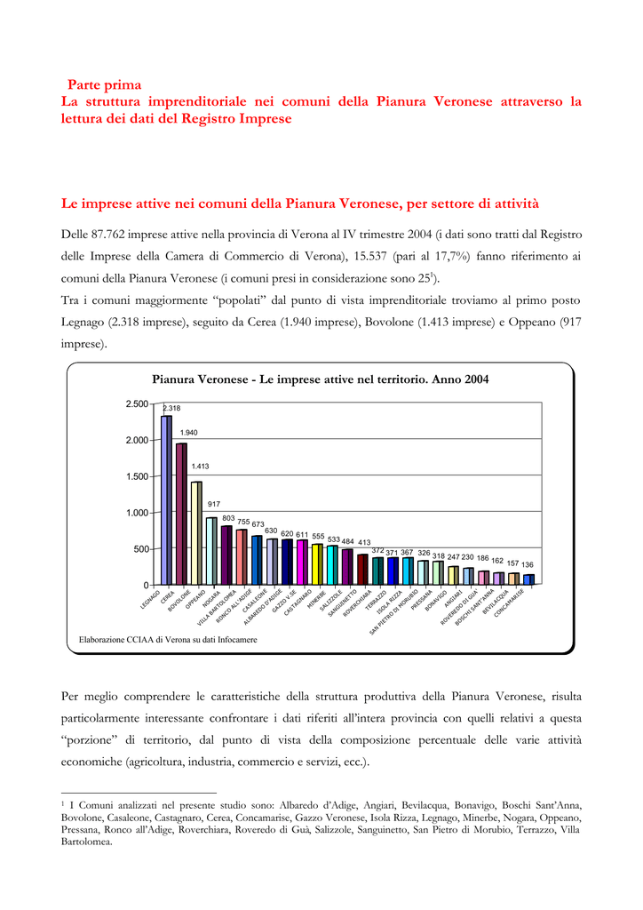 Parte prima La struttura imprenditoriale nei comuni della Pianura