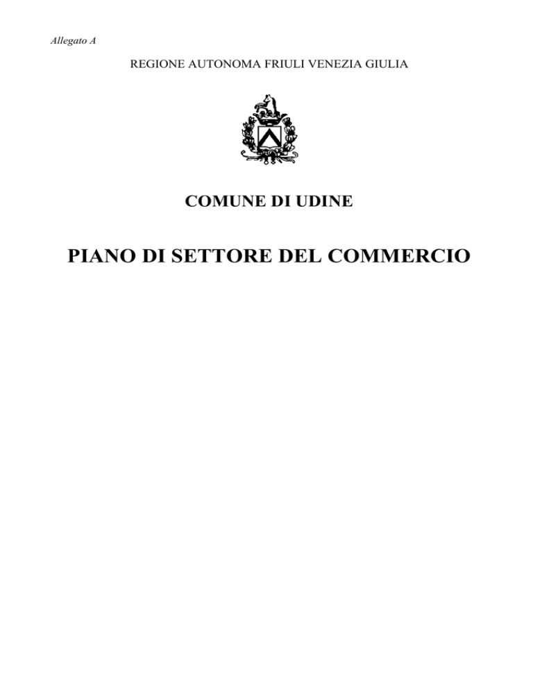 Allegato A REGIONE AUTONOMA FRIULI VENEZIA GIULIA COMUNE DI UDINE PIANO DI SETTORE DEL COMMERCIO INDICE ARTICOLO 1..................................................................................................................................................... 3 Oggetto.............................................................................................................................................................. 3 ARTICOLO 2..................................................................................................................................................... 3 Definizioni......................................................................................................................................................... 3 ARTICOLO 3..................................................................................................................................................... 4 Classificazione delle grandi strutture di vendita .............................................................................................. 4 ARTICOLO 4..................................................................................................................................................... 4 Modello territoriale comunale .......................................................................................................................... 4 ARTICOLO 5..................................................................................................................................................... 4 Domanda di autorizzazione .............................................................................................................................. 4 ARTICOLO 6..................................................................................................................................................... 5 Criteri di localizzazione delle grandi strutture di vendita................................................................................ 5 ARTICOLO 7..................................................................................................................................................... 5 Procedure di rilascio delle autorizzazioni per grandi strutture di vendita ...................................................... 5 Rete G.S.V. esistente alla data di approvazione del presente piano di settore................................................. 6 ALLEGATO A2 ................................................................................................................................................. 7 Obiettivi di presenza e sviluppo per esercizi di grande struttura ex lege 29/05 - determinazione del contingente, espresso in mq., del settore alimentare e non alimentare, disponibile per ciascuna delle 3 zone commerciali omogenee in cui e’ suddiviso il territorio comunale, nonché del contingente specificatamente destinato alla riconversione di aree produttive e dismesse........................ 8 2 ARTICOLO 1 Oggetto Il presente Piano di settore disciplina, in attuazione della L.R. 5.12.2005 n. 29, il rilascio delle autorizzazioni amministrative per l’apertura, l’ampliamento, il trasferimento di sede e la concentrazione delle grandi strutture di vendita, cioè degli esercizi di commercio al dettaglio con superficie di vendita superiore a 1.500 mq., costituiti come esercizio singolo, centro commerciale o complesso commerciale, la cui superficie coperta complessiva sia inferiore o pari a mq. 15.000. Il presente Piano di settore si fonda sulle attuali previsioni azzonative del P.R.G.C. e pertanto non costituisce variante urbanistica. Per quanto non espressamente disciplinato dal presente Piano, si rinvia alle norme vigenti in materia di commercio al dettaglio in sede fissa. ARTICOLO 2 Definizioni Ai fini del presente Piano si intende per: a) esercizi di vendita al dettaglio di vicinato: gli esercizi con superficie di vendita fino a metri quadrati 250; b) esercizi di vendita al dettaglio di media struttura: gli esercizi con superficie di vendita superiore a metri quadrati 250 e fino a metri quadrati 1.500; c) esercizi di vendita al dettaglio di grande struttura: gli esercizi aventi superficie di vendita superiore a metri quadrati 1.500, organizzati come esercizio singolo, centro commerciale o complesso commerciale; d) centro commerciale al dettaglio: un insieme di più esercizi al dettaglio, realizzati secondo un progetto unitario, con infrastrutture e servizi gestiti unitariamente, la cui superficie complessiva di vendita sia superiore a metri quadrati 1.500 e la cui prevalente destinazione commerciale possa essere integrata da servizi all’utenza diversi da quelli esclusivamente commerciali, incluse le attività di intrattenimento e svago, con esclusione delle attività di vendita all’ingrosso; e) complesso commerciale: un insieme di più esercizi sia di vicinato, che di media o grande struttura, insediati in uno o più edifici, funzionalmente o fisicamente integrati tra loro, o che facciano parte di un unico Piano attuativo la cui superficie complessiva di vendita sia superiore a metri quadrati 1.500 e la cui prevalente destinazione commerciale possa essere integrata da servizi all’utenza diversi da quelli esclusivamente commerciali, incluse le attività di intrattenimento e svago; f) superficie di vendita di un esercizio al dettaglio: l’area alla quale ha accesso il pubblico, compresa quella occupata dai banchi, dalle scaffalature o quella comunque destinata a mostra o esposizione di merce, con esclusione dell’area destinata ai magazzini o ai depositi, ai locali di lavorazione o agli uffici e ai servizi, nonché dell’area interna adibita a deposito dei carrelli; g) superficie di vendita di un centro commerciale al dettaglio o di un complesso commerciale: quella risultante dalla somma delle superfici di vendita degli esercizi al dettaglio appartenenti al centro, al complesso commerciale; h) superficie coperta di un edificio: la 