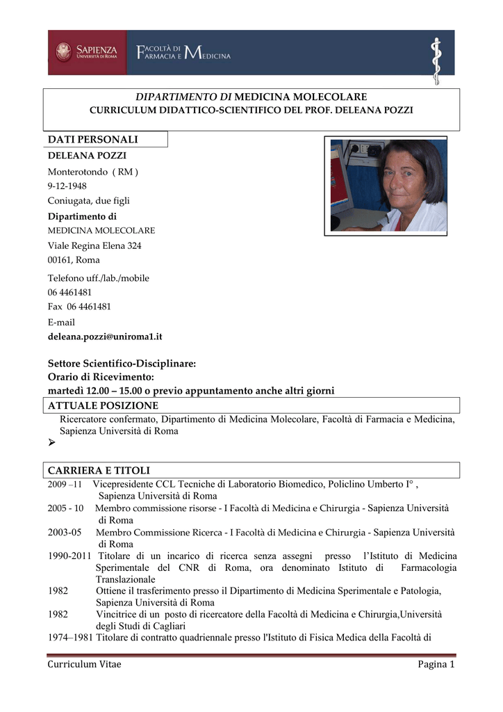 Curriculum Vitae Pagina 1 DIPARTIMENTO DI MEDICINA
