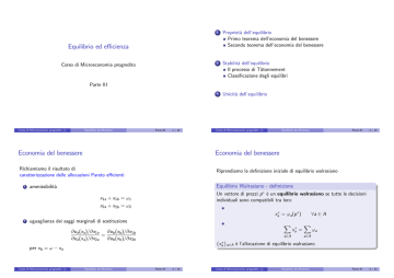 p ∗ e {xa∗ }a∈A è un equilibrio walrasiano allora {xa∗ }a∈A è un ottimo