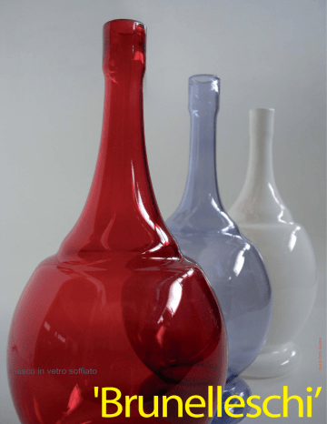 idea di Carlo Guazzo Fiasco in vetro soffiato 'Brunelleschi’ Misure Ø16xH35cm Colori: trasparente, rosso, viola e bianco. TUTTOATTACCATO Via Ca' Morosini 94 36061 Bassano del Grappa (VI) - ITALY Tel. +39 0424 502029 - 502596 Fax +39 0424 502386 [email protected] www.tuttoattaccato.com Fiaschi in vetro pirex soffiato Belli, soffiati con la silhouette che riprende i vecchi fiaschi del Chianti toscano