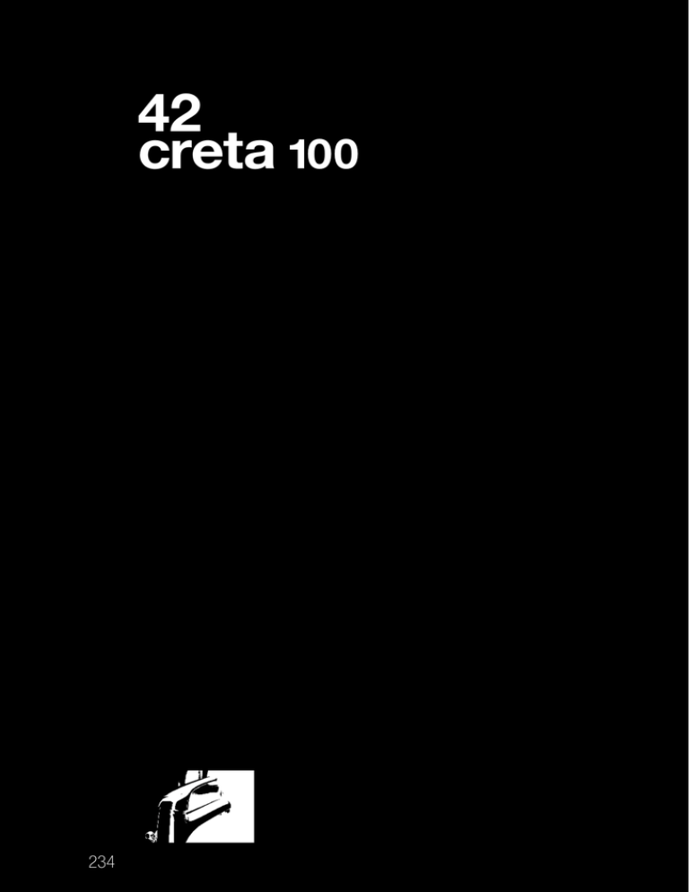 42 creta 100 234 235 creta 100 creta 100 42..100 Miscelatore vasca esterno completo Single-lever complete bath-shower mixer Mitigeur bain-douche apparent avec garniture de douche Mezclador monomando baño-ducha mural con equipo ducha Bademischer mit Brausegarnitur RICAMBI / SPARE PARTS: 53CC956G40DAP CARTUCCIA / CARTRIDGE CR 42..101 Miscelatore vasca esterno con raccordi bordo vasca Single-lever bath-shower mixer with pillar connection Mitigeur bain-douche sur gorge avec garniture de douche Mezclador baño-ducha con equipo ducha, inst.encimera Kantewannenfüll- und Brausegarnitur RICAMBI / SPARE PARTS: 53CC956G40DAP CARTUCCIA / CARTRIDGE CR 42..105 Miscelatore vasca esterno con doccia “Duplex” Single lever bath-shower mixer with adjustable shower kit Mitigeur bain-douche apparent avec garniture de douche orientable Mezclador monomando baño-ducha mural con equipo ducha, soporte articulado Bademischer mit Brausegarnitur, Brausehalter verstellbar RICAMBI / SPARE PARTS: 53CC956G40DAP CARTUCCIA / CARTRIDGE CR 45..131 Duplex esterno Adjustable shower kit Garniture de douche orientable Equipo ducha con soporte articulado Brausegarnitur mit Brausehalter schwenkbar CR 236 42..108 creta 100 Miscelatore vasca esterno con doccia “Duplex” e raccordi bordo vasca Single lever bath-shower mixer w/adjustable shower kit and pillar connection Mitigeur bain-douche sur gorge avec garniture de douche orientable Mezclador monomando baño-ducha mural con equipo ducha, soporte articulado, inst.encimera Kantewannenfüll- und Brausegarnitur, Brausehalter verstellbar RICAMBI / SPARE PARTS: 53CC956G40DAP CARTUCCIA / CARTRIDGE CR 42..111 Miscelatore vasca esterno senza “Duplex” Single-lever bath mixer Mitigeur bain-douche apparent nu Mezclador monomando para bañera Bademischer ohne Brausegarnitur RICAMBI / SPARE PARTS: 53CC956G40DAP CARTUCCIA / CARTRIDGE CR 42..118 Monocomando bordo vasca Deck mounted bath mixer Mitigeur bain-douche 3 trous Batería baño-ducha encimera Wannenbatterie RICAMBI / SPARE PARTS: 53CC956GM CARTUCCIA / CARTRIDGE CR 42..119 Miscelatore vasca esterno con deviatore Single lever bath mixer with diverter Mitigeur bain-douche apparent avec inverseur Mezclador monomando baño-ducha con inversor Bademischer mit Umstellung RICAMBI / SPARE PARTS: 53CC956G40DAP CARTUCCIA / CARTRIDGE CR 237 creta 100 42..104 Miscelatore vasca esterno con deviatore e doccia “Duplex” Single lever bath mixer with diverter and adjustable shower kit Mitigeur bain-douche apparent avec inverseur et garniture de douche orientable Mezclador monomando baño-ducha con inversor y equipo ducha soporte articulado Bademischer mit Umstellung und Brausegarnitur, Brausehalter verstellbar RICAMBI / SPARE PARTS: 53CC956G40DAP CARTUCCIA / CARTRIDGE CR 42..211 Miscelatore monoforo lavabo, scarico automatico 1”1/4 Single-lever basin mixer with 1”1/4 pop-up waste Mitigeur lavabo avec vidage automatique 1”1/4 Mezclador lavabo con desagüe automático 1”1/4 Waschtischmischer Ab- und Überlaufgarnitur 1”1/4 RICAMBI / SPARE PARTS: 53CC956G40DAP CARTUCCIA / CARTRIDGE CR 42..205 Miscelatore monoforo lavabo senza scarico Single-lever basin mixer without waste Mitigeur lavabo sans vidage Mezclador monomando lavabo sin desagüe Waschtischmischer ohne Ablaufgarnitur RICAMBI / SPARE PARTS: 53CC956G40DAP CARTUCCIA / CARTRIDGE CR 42..211L Miscelatore monoforo lavabo con leva clinica, scarico automatico 1”1/4 Medical-lever basin mixer, 1”1/4 pop-up waste Mitigeur lavabo avec manette fémorale, vidage automatique 1”1/4 Mezclador lavabo con maneta gerontológica, desagüe automático 1”1/4 Waschtischmischer mit langem Hebel, Ab- und Überlaufgarnitur 1”1/4 RICAMBI / SPARE PARTS: 53CC956G40DAP CARTUCCIA / CARTRIDGE CR 238 42..205L creta 100 Miscelatore monoforo lavabo leva clinica, senza scarico Medical-lever basin mixer without waste Mitigeur lavabo avec manette fémorale, sans vidage Mezclador lavabo con maneta gerontológica, sin desagüe Waschtischmischer mit langem Hebel, ohne Ablaufgarnitur RICAMBI / SPARE PARTS: 53CC956G40DAP CARTUCCIA / CARTRIDGE CR 42..217 Monoforo lavabo con bocca estraibile, scarico automatico 1”1/4 Single-lever basin mixer with pull-out spout, 1”1/4 pop-up waste Mitigeur lavabo avec bec escamotable, vidage automatique 1”1/4 Mezclador lavabo con caño extraíble, desagüe automático 1”1/4 Waschtischmischer mit herausziehbarer Handbrause, Ab- und Überlaufgarnitur 1”1/4 RICAMBI / SPARE PARTS: 53CC956G40AP CARTUCCIA / CARTRIDGE CR 42..306 Miscelatore monoforo bidet, scarico automatico 1”1/4 Single-lever bidet mixer with 1”1/4 pop-up waste Mitigeur bidet avec vidage automatique 1”1/4 Mezclador monomando bidé con desagüe automático 1”1/4 Bidetmischer Ab- und Überlaufgarnitur 1”1/4 RICAMBI / SPARE PARTS: 53CC956G40DAP CARTUCCIA / CARTRIDGE CR 42..304 Miscelatore monoforo bidet senza scarico Single-lever bidet mixer without waste Mitigeur bidet sans vidage Mezclador monomando bidé sin desagüe Bidetmischer ohne Ablaufgarnitur RICAMBI / SPARE PARTS: 53CC956G40DAP CARTUCCIA / CARTRIDGE CR 239 creta 100 42..501 Monocomando lavello a muro Wall mounted single-lever kitchen mixer Mitigeur évier mural Mezclador fregadero exterior Wand-Spültischmischer RICAMBI / SPARE PARTS: 53CC956G40DAP CARTUCCIA / CARTRIDGE CR BD - NR - TD 42..501L Monocomando lavello a muro, leva clinica Wall mounted medical-lever kitchen mixer Mitigeur évier mural avec manette fémorale Mezclador fregadero exterior con maneta gerontológica Wand-Spültischmischer mit langem Hebel RICAMBI / SPARE PARTS: 53CC956G40DAP CARTUCCIA / CARTRIDGE CR BD - NR - TD 42..511 Miscelatore doccia esterno 1/2” 1/2” single-lever shower mixer Mitigeur douche apparent nu 1/2” Mezclador monomando ducha 1/2” sin equipo ducha Brausemischer 1/2” RICAMBI / SPARE PARTS: 53CC956G40DAP CARTUCCIA / CARTRIDGE CR 42..509 Miscelatore doccia esterno 1/2” con doccia “Duplex” 1/2” single-lever shower mixer with adjustable sho