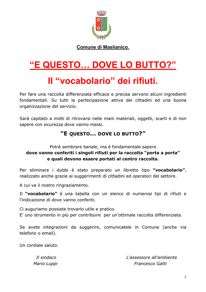 Dizionario Rifiuti - Comune di Maslianico