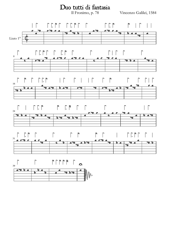 Duo tutti di fantasia Il Fronimo, p. 78 Liuto 1° 8 16 » a » db 24 » + e b a a ø 39 » »/ … a c dc » adb a » »/ … d d a » b d » b ad » e a a ba b a a c d c … » dbd d a bd ^ a » d … d » ø » d c a a c ø » a d b d ad … » … … e » » »/ … c d c a a d » ø » » b a cd »/ b d » » ad c a ø » … d b a » a c » »/ … » a d db » »/ … a c d c » »/ … a dad » db a 31 » »/ … » d c da a … » »/ … » c d c a ø » c d a Vincenzo Galilei, 1584 … cd » a … » a c da bd e a c b a ø ø a d » » db a d a d » d a » d a da » ø » c a ø » d ø d b a a » ab ø » a » »/ … » a da d b a d » ø db